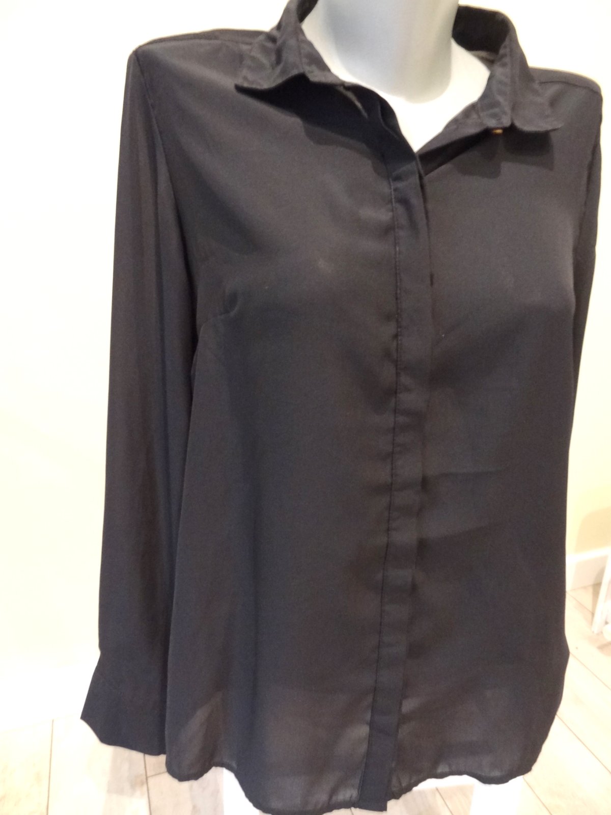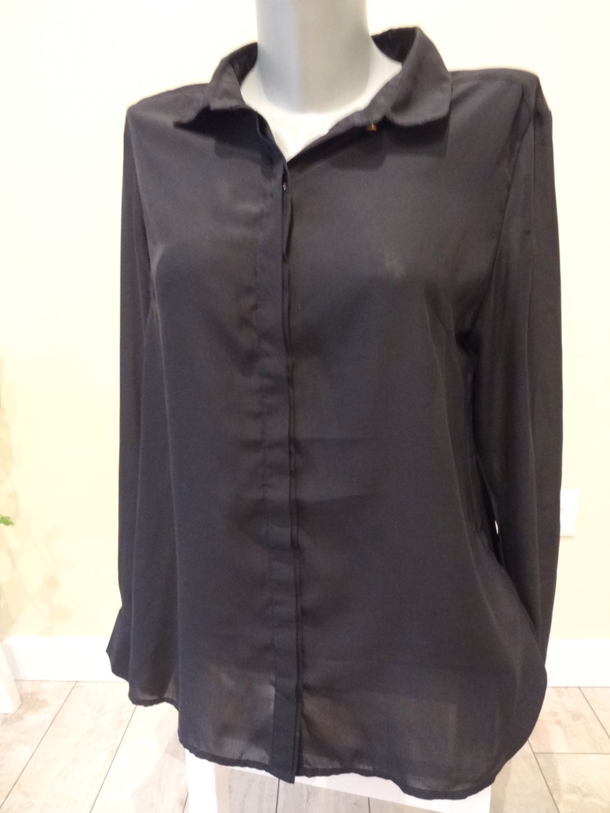 Dámska čierna elegantná blúzka ... veľmi dobrý stav... značka: AMISU ... veľ. L - dlžka 72 cm, šírka pod pazuchami 49 cm, šírka pás 48 cm