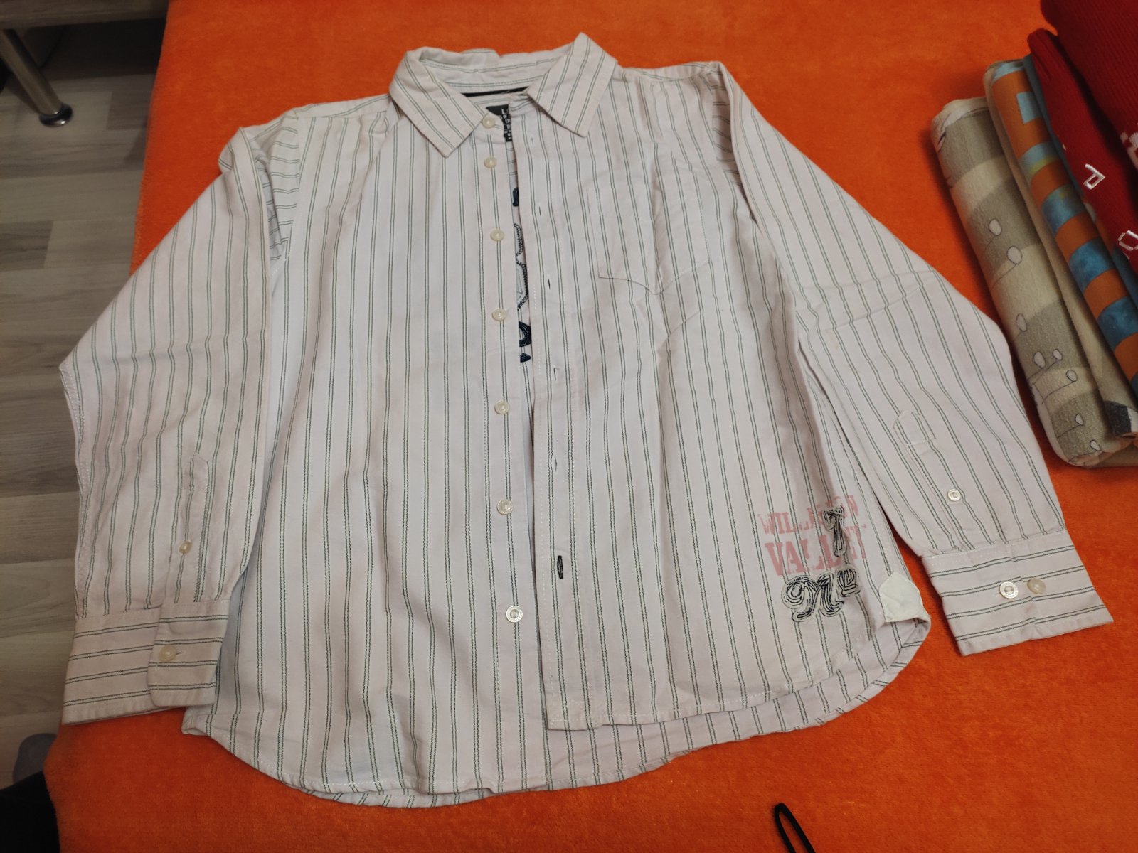 Ponúkam košelu pre chlapca, malinký fliačik na golieri snád vanishom pôjde, šírka goliera 37cm, šírka košele 54cm