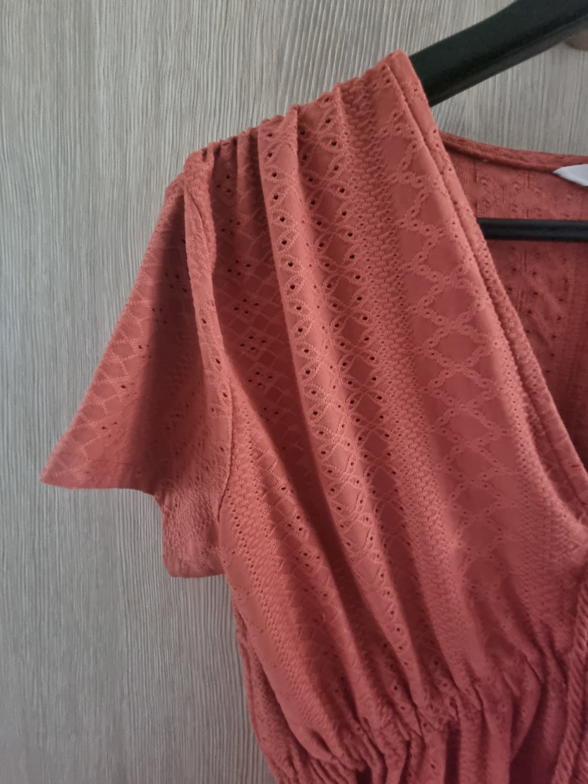 Farbu sa mi nepodarilo poriadne zachytiť, je to skôr taká lososovo ružová, veľmi pekná žiarivá :) Top je z príjemného materiálu