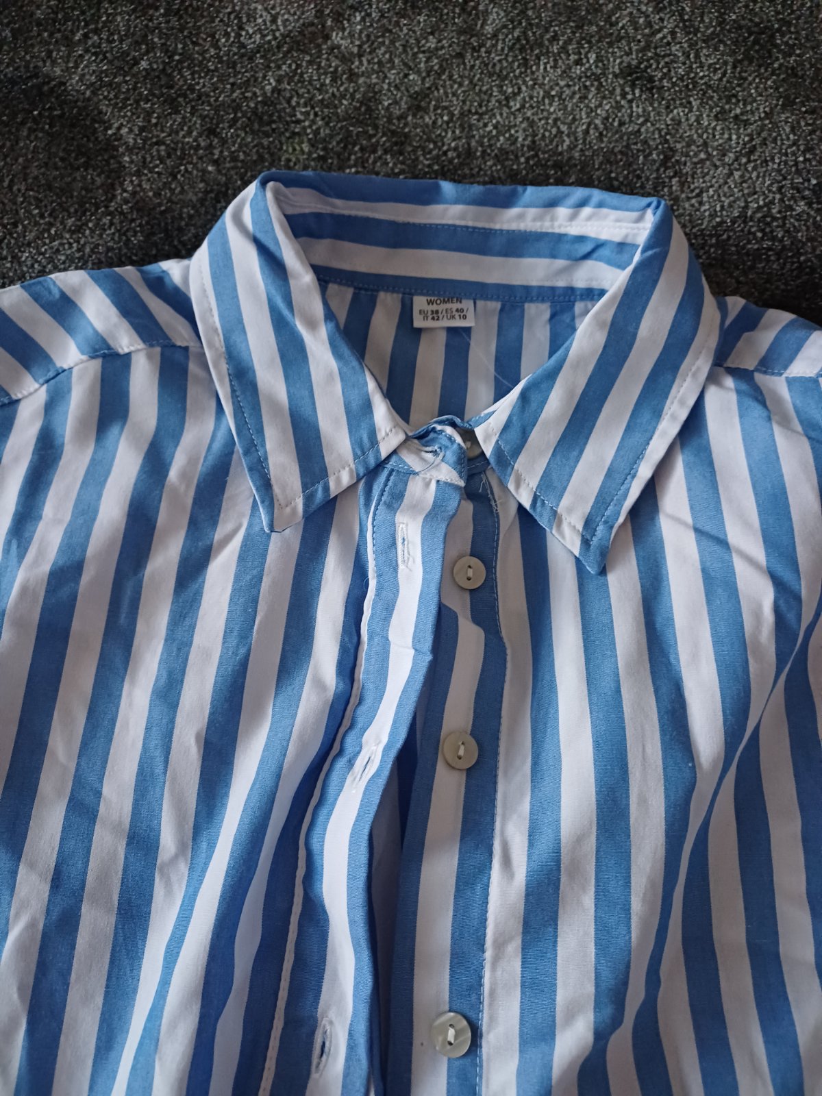 Predám košeľu značky Koton. Je bielo-modrá pásikavá. Nezapnem ju cez prsia,preto predávam.