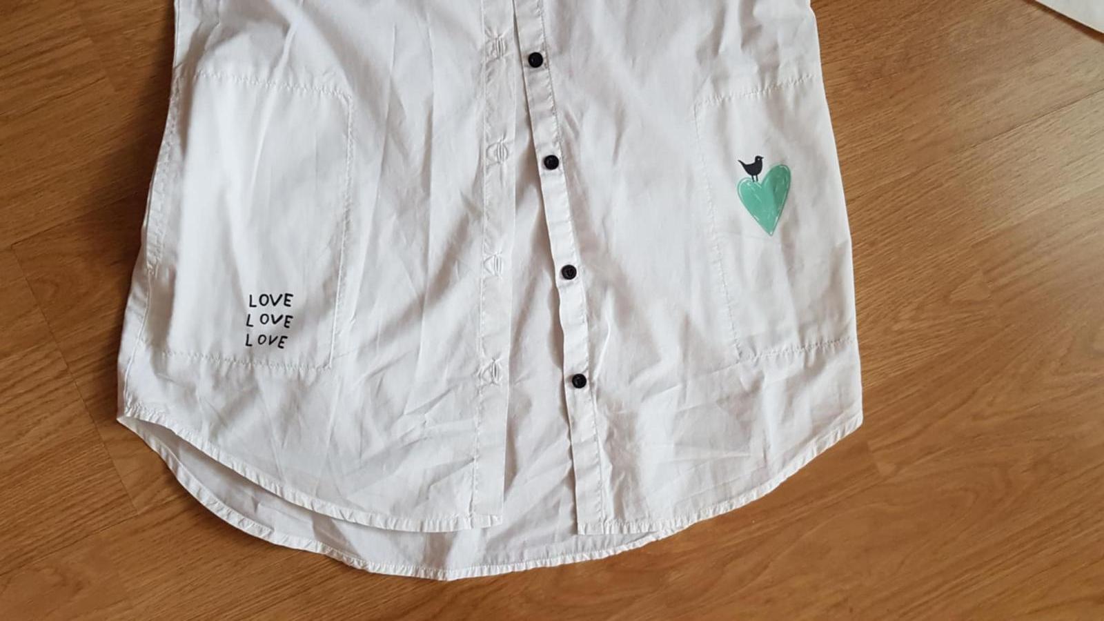 výborný stav, po bokoch sú vrecká. Potlač je v predu i v zadu. 100% bavlna.