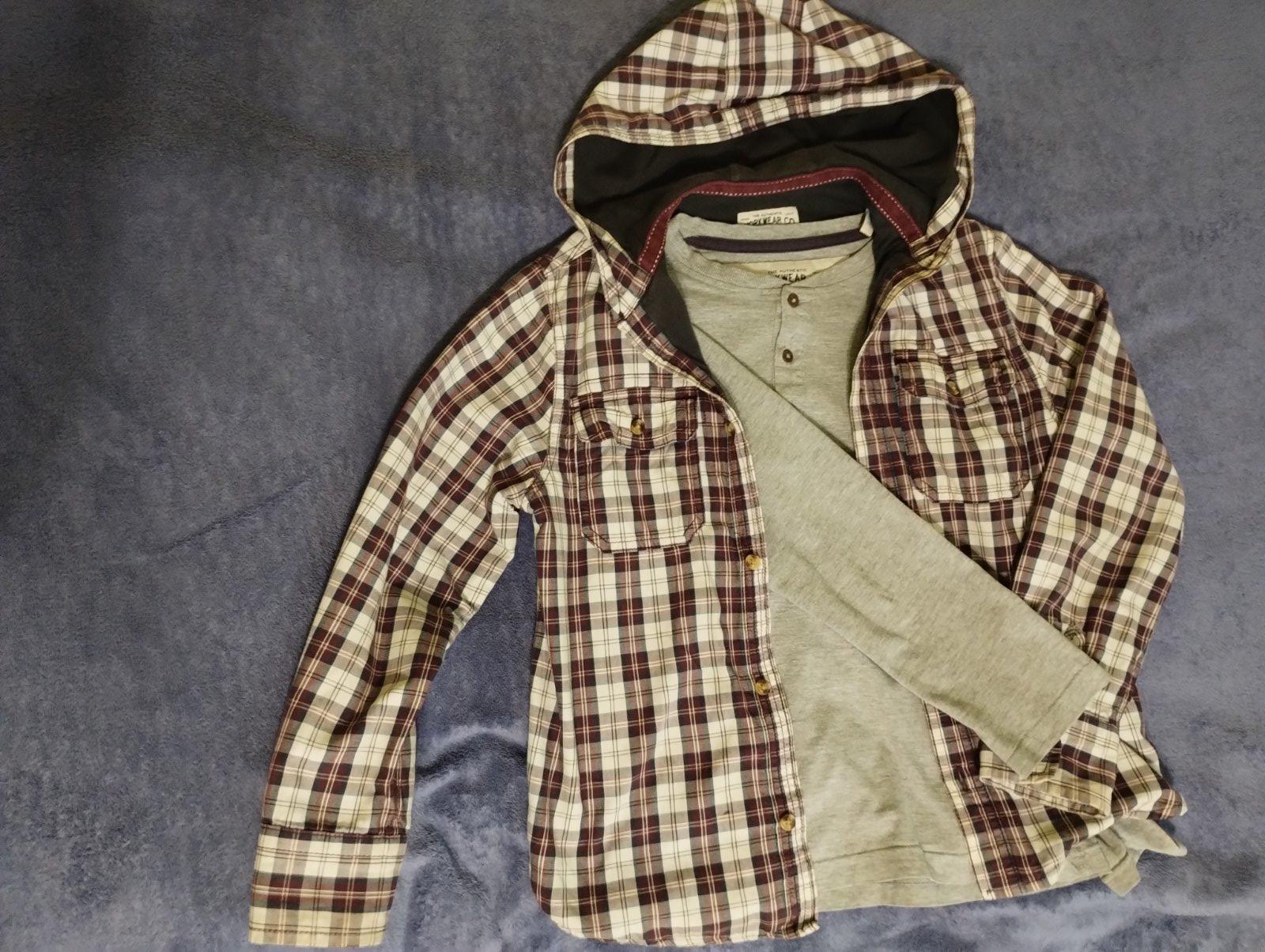 Veľkosť uvedená 122, ale určite väčšia. Veľmi pekná košeľa, dobrý stav. Dĺžka 57 cm, šírka 43 cm, rukáv od goliera 59 cm.