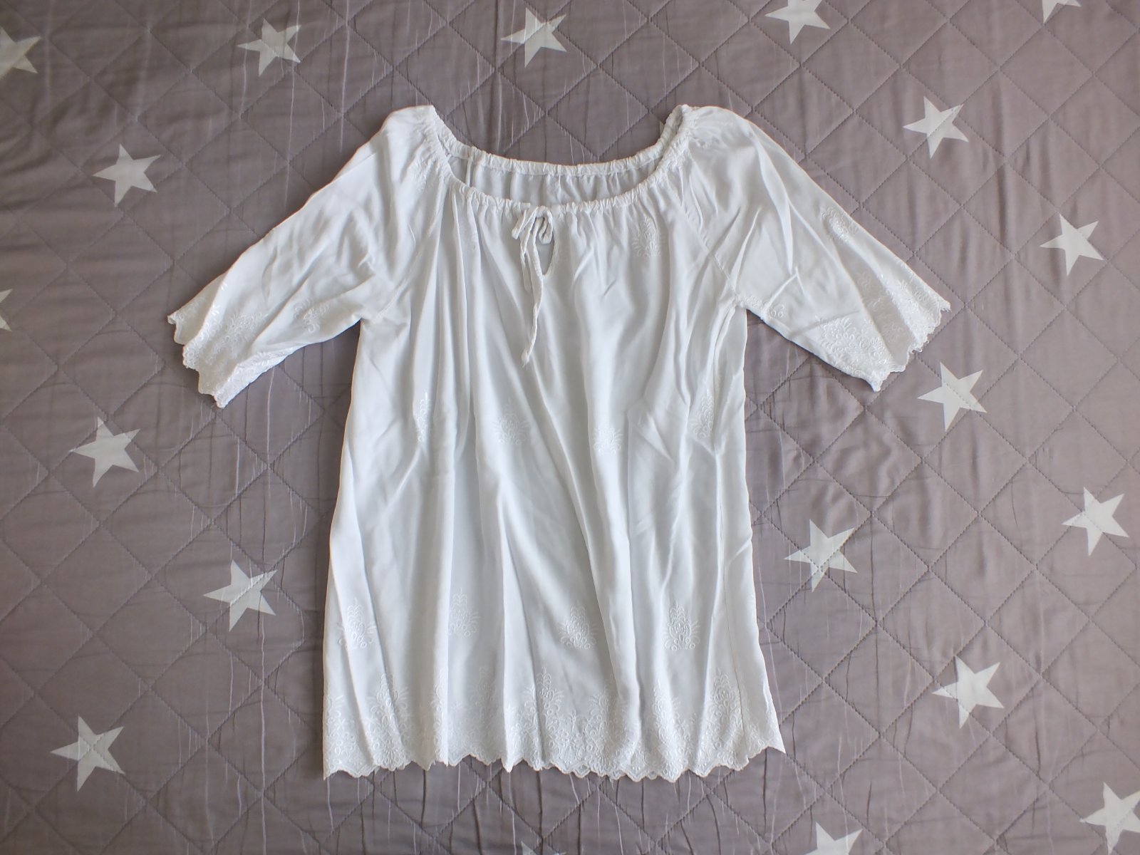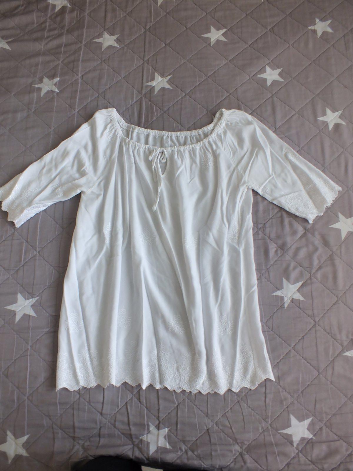 jemná biela dámska blúzka,nosená málo,bez poškodenia,veľkosť M/L,cena 6,0€ + poštovné
