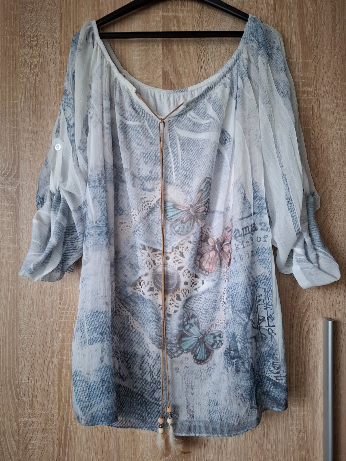 Málo nosené, veľkosť univerzálna, kupované v butiku, 3/4 rukávy, podsita, cena 4 Eur
