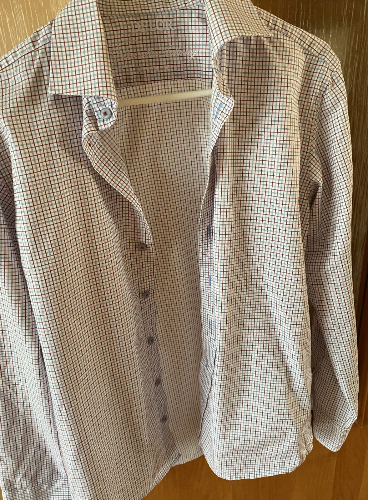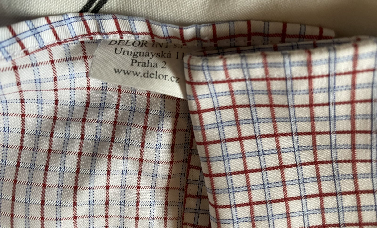 Kvalitná košeľa šitá na mieru v Delor,cz Praha v. 40, materiál 100% bavlna, základná farba biela + kocky (bledomodrá a bordovo-červená), kvalitne prepracovaná, kopa krásnych detailov - viď foto, krásna, v top stave, opratá, iba treba prežehliť. Miery: dĺžka od krku dolu: 70cm, šírka od podpazušia dolu: 43cm, na bokoch kratšia - dookrúhla, šírka v podpazuší : 53cm2x, Pôvodná cena vysoká, predáva sa na zlomok ceny. Pôvodná cena vysoká, predáva sa na zlomok ceny.