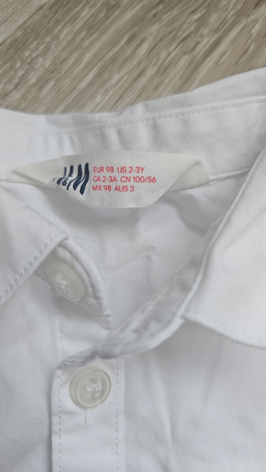 Predám bielu detskú košeľu, oblečenú len jedenkrát. Je v stave ako nová. Košeľa je vypraná, len som ju už nestihla vyžehliť.