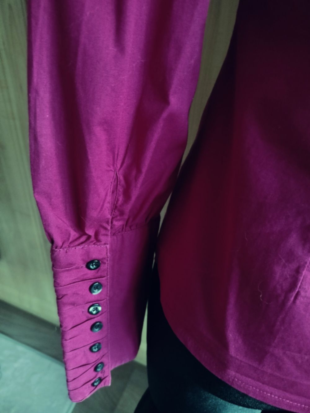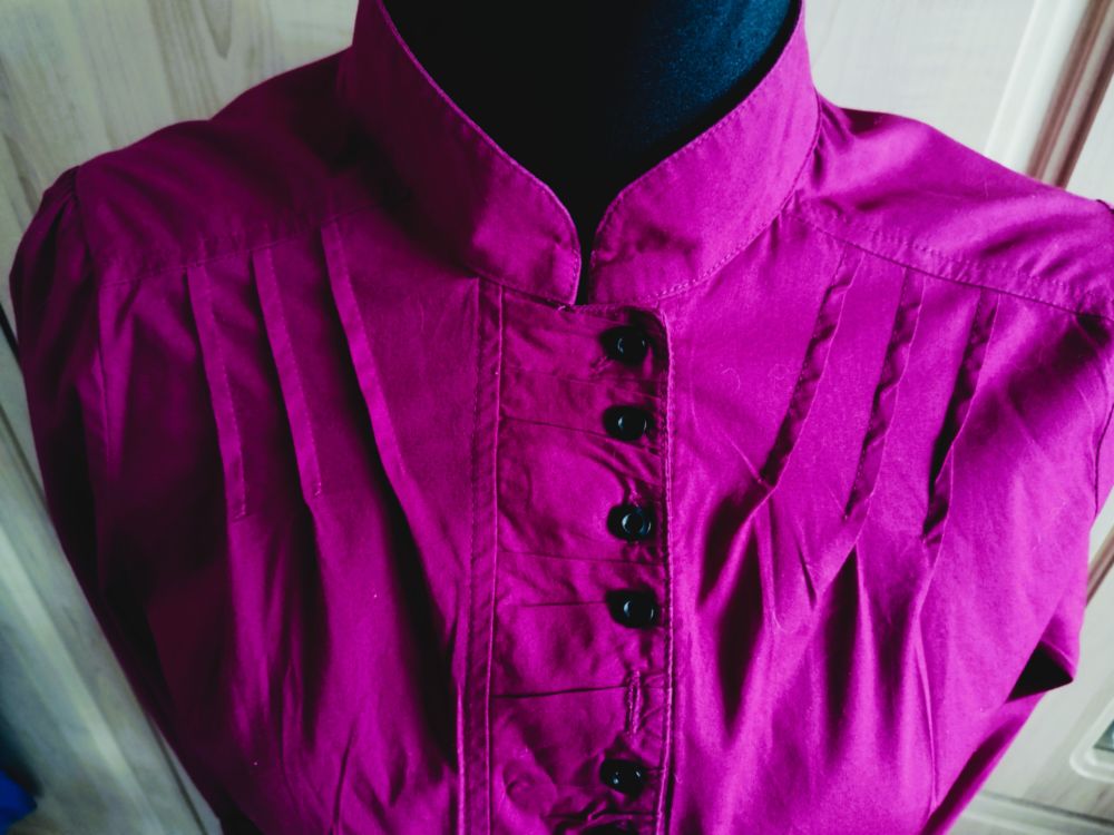 Krásna blúzka fuksiovej farby so zaujímavými detailmi v top stave, oblečená pár krát. Zloženie: 97% bavlna, 3% elastan. Šírka pod pazuchami 46cm, dĺžka 61cm.
