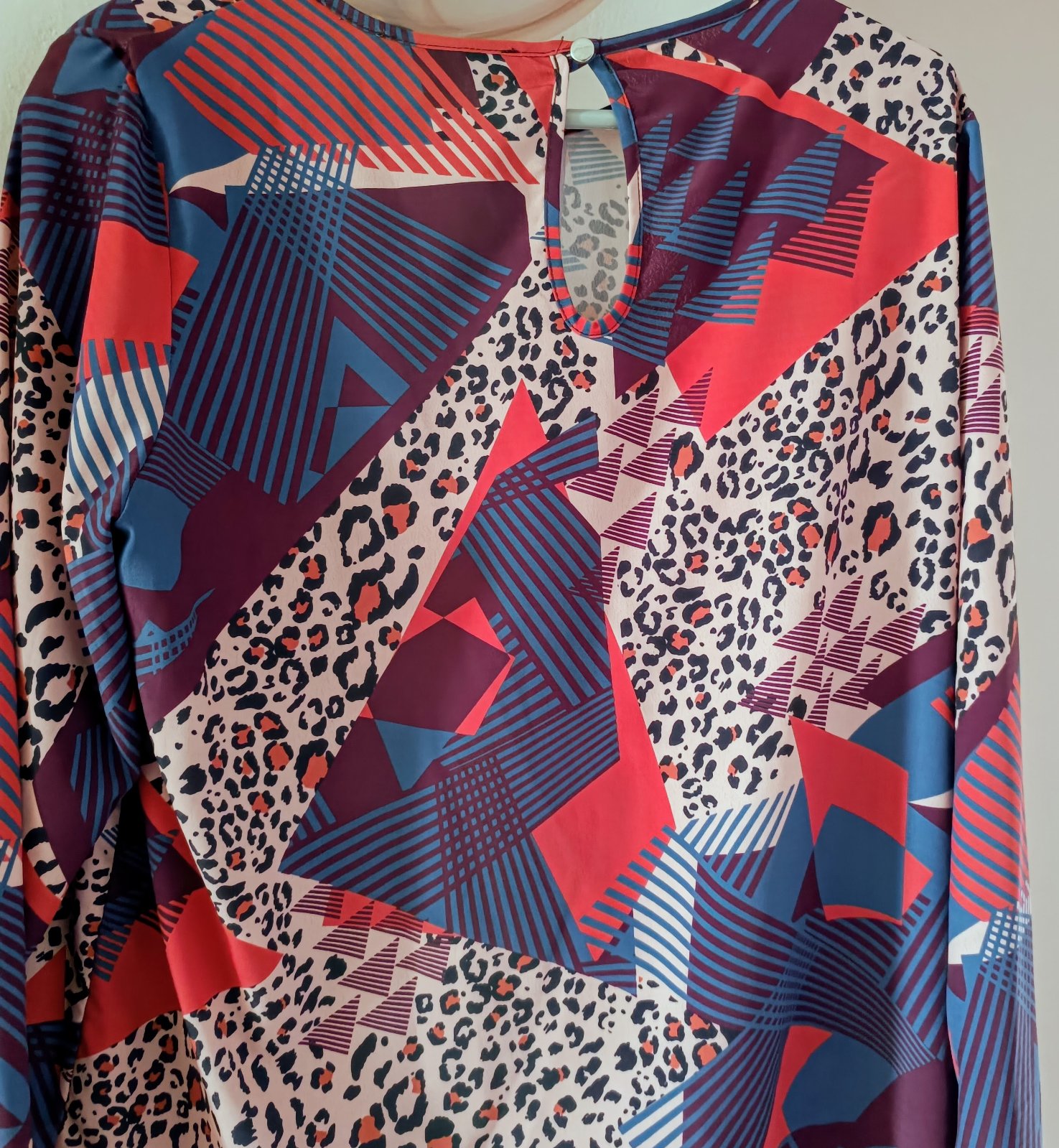 Ľahká blúzka viacfarebná, dlhý rukáv, zapínanie vzadu na slzičku.