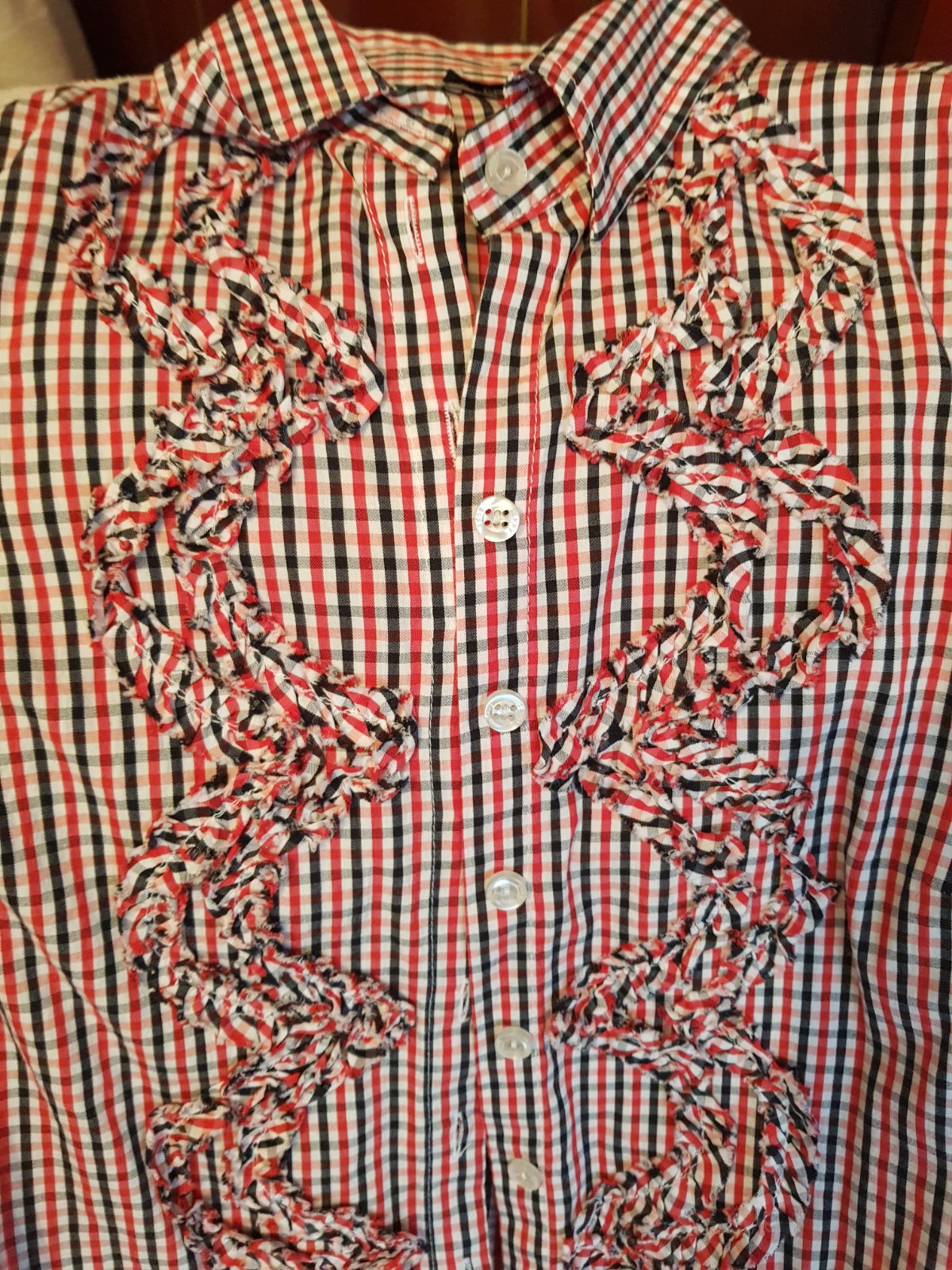 Nádherná košeľa bez poškodenia.Mne už žiaľ malá.Bola dosť drahá.