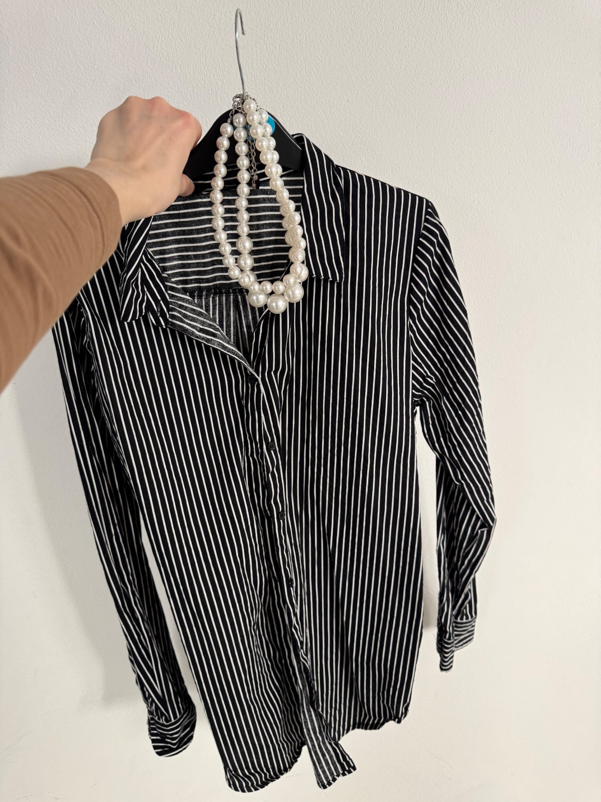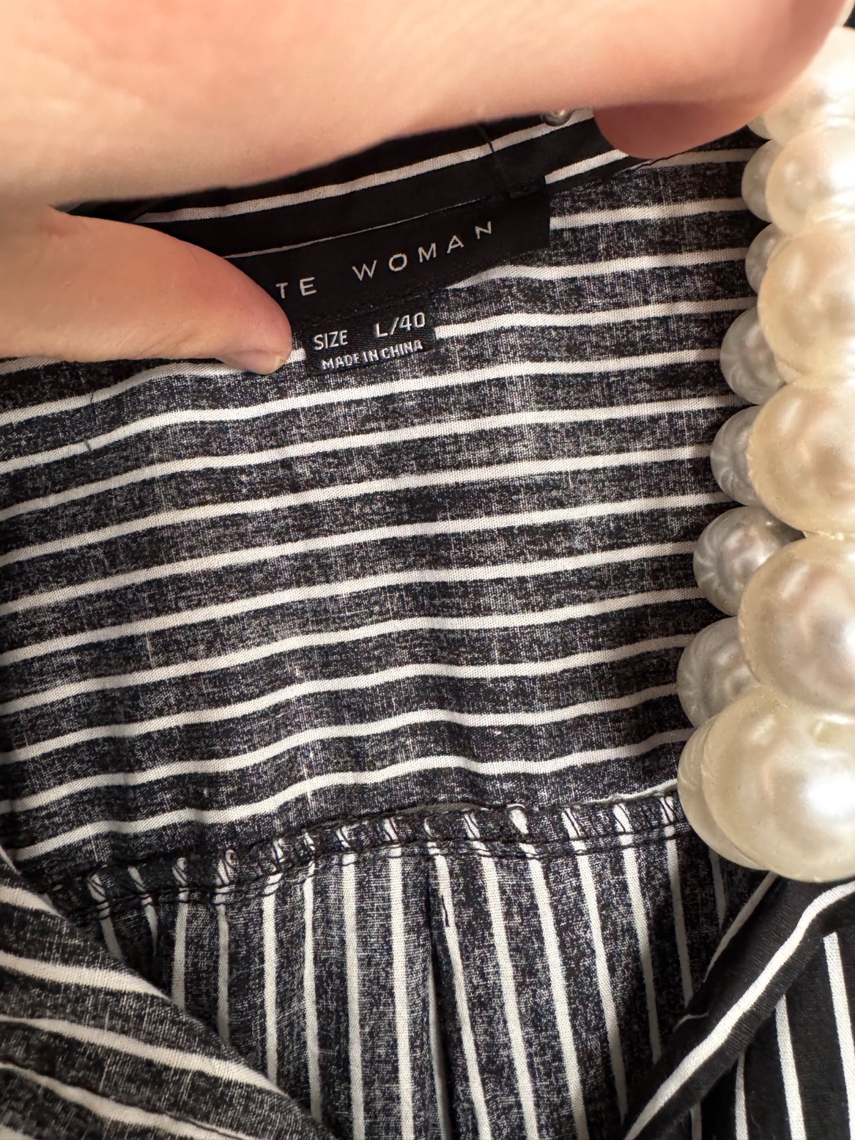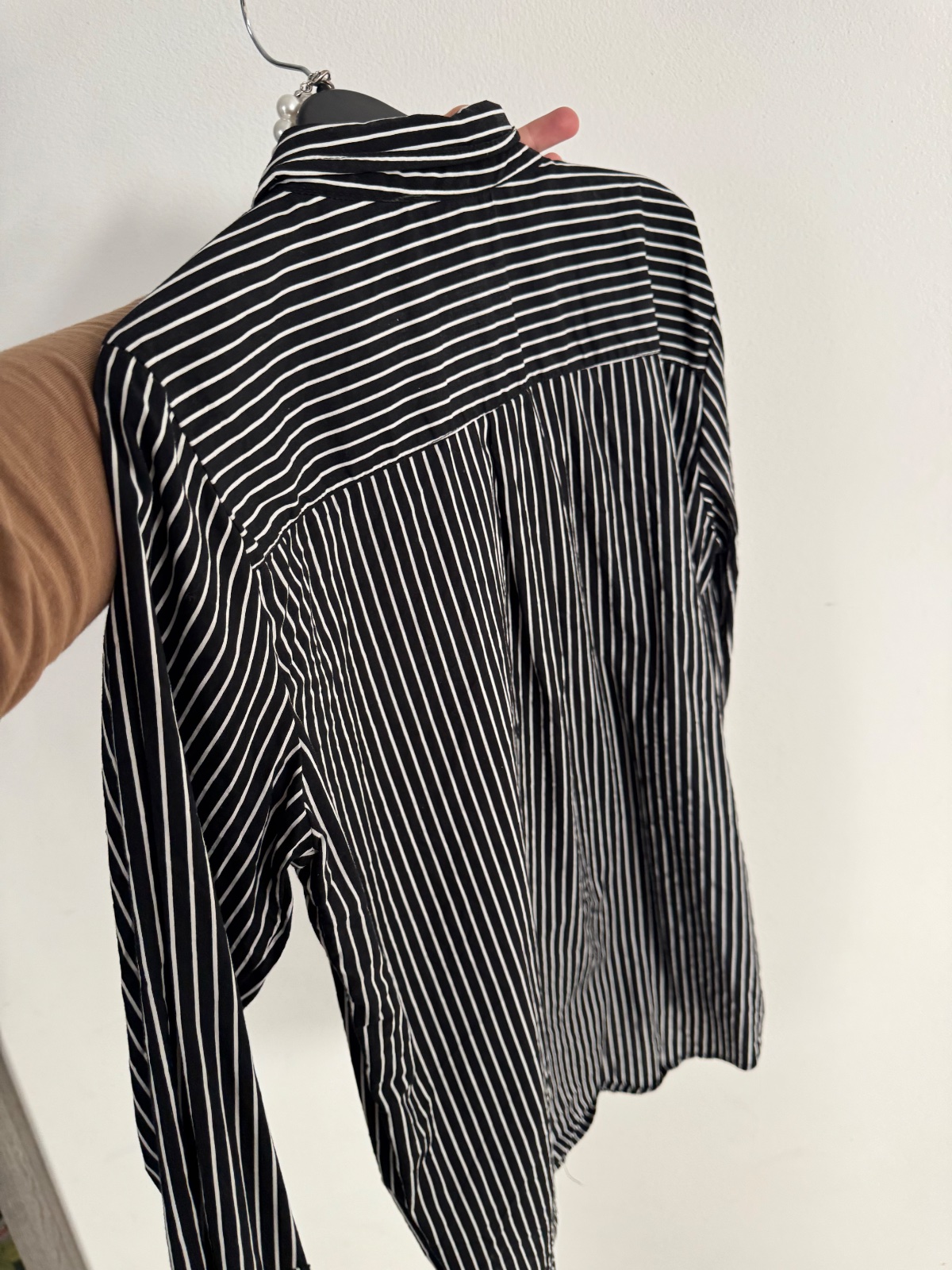 Košeľa alebo blúzka, zadná strana je trošku dlhšia než predná. Voľnejší strih. Na prsiach trošku nariasené, čo opticky zväčšuje dekolt a zároveň zakryje, ak treba bruško. Materiál je nekrčivý a nep...