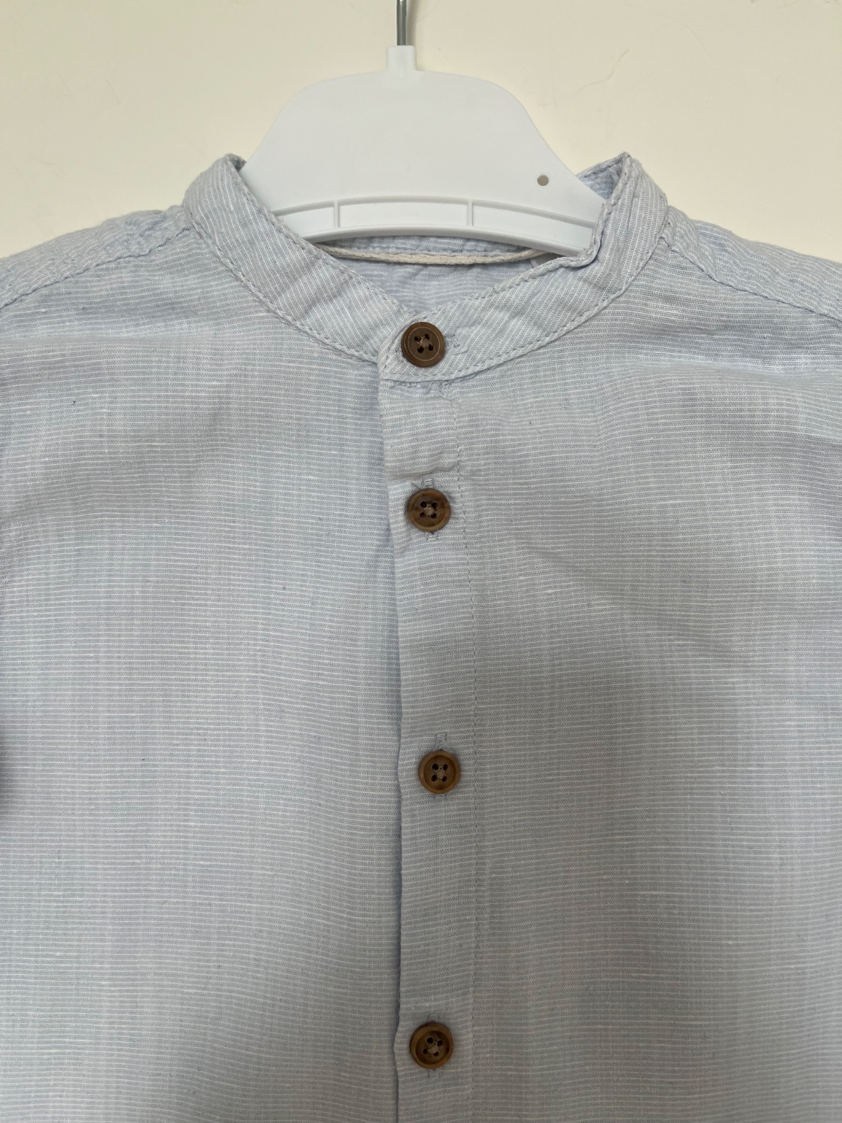 bez poskodeni, svetlomodra kozela na gombiky so stojacikom zn. ZARA, velkost 6-9mes/74, rukavy sa daju vysukat a zapnut na gombicku