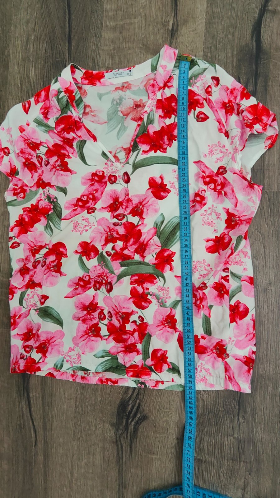 Predám staroružovú blúzku Reserved, veľkosť M (40). Elastická. Hlbší výstrih, pekne ukáže na postave. Farba skôr staroružová. Ale jasnejšia ako na foto, nepodarilo sa mi to lepšie odfotiť :( Rozmer...