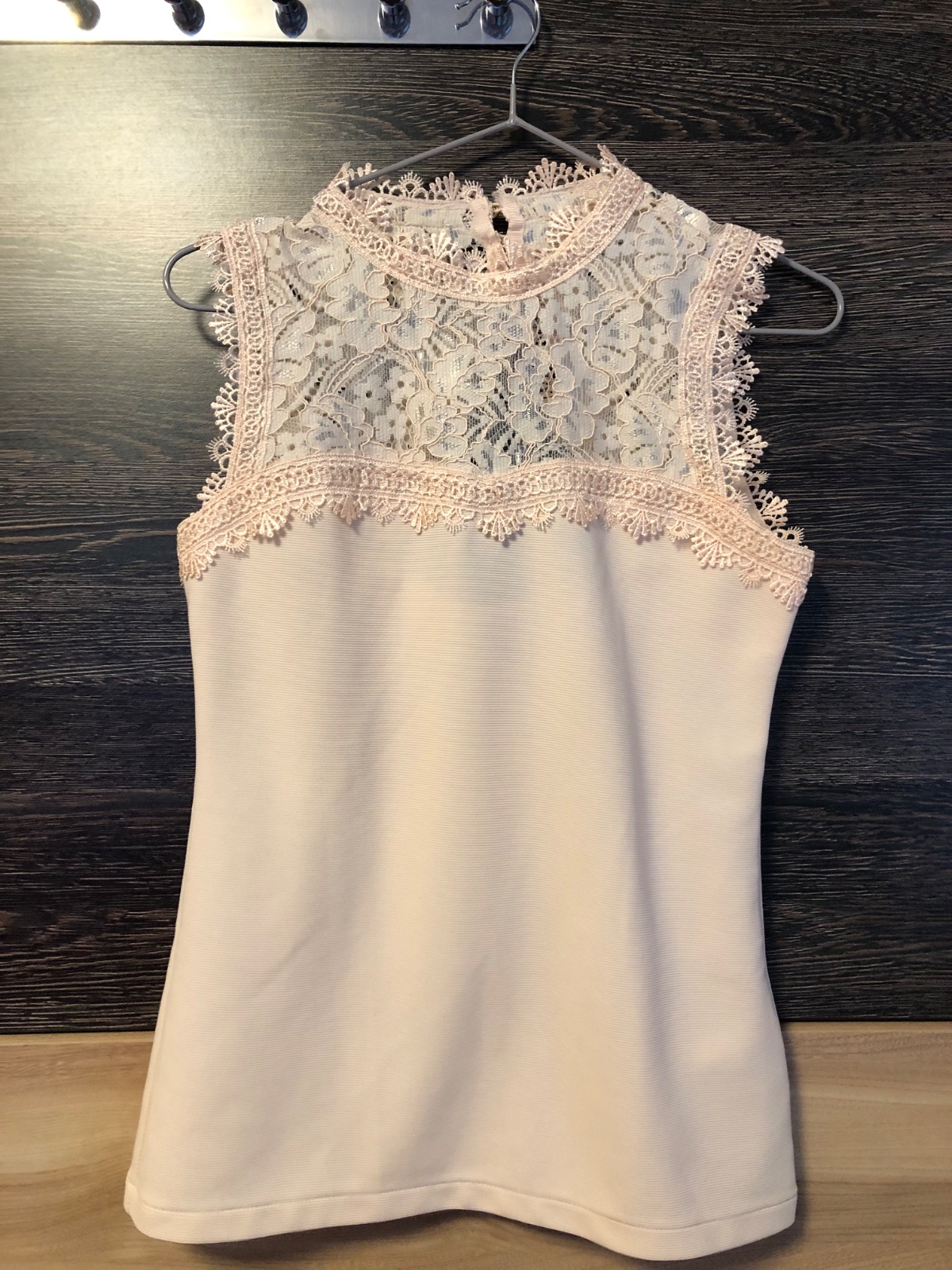 Svetloruzova bluzka bez rukavov s cipkou 38