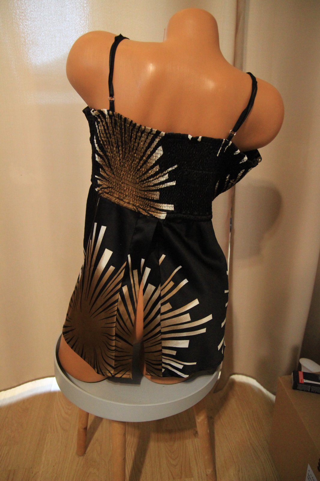 Čierno hnedý saténový top značky Vero Moda, veľkosť L. Na chrbte je na gumu.