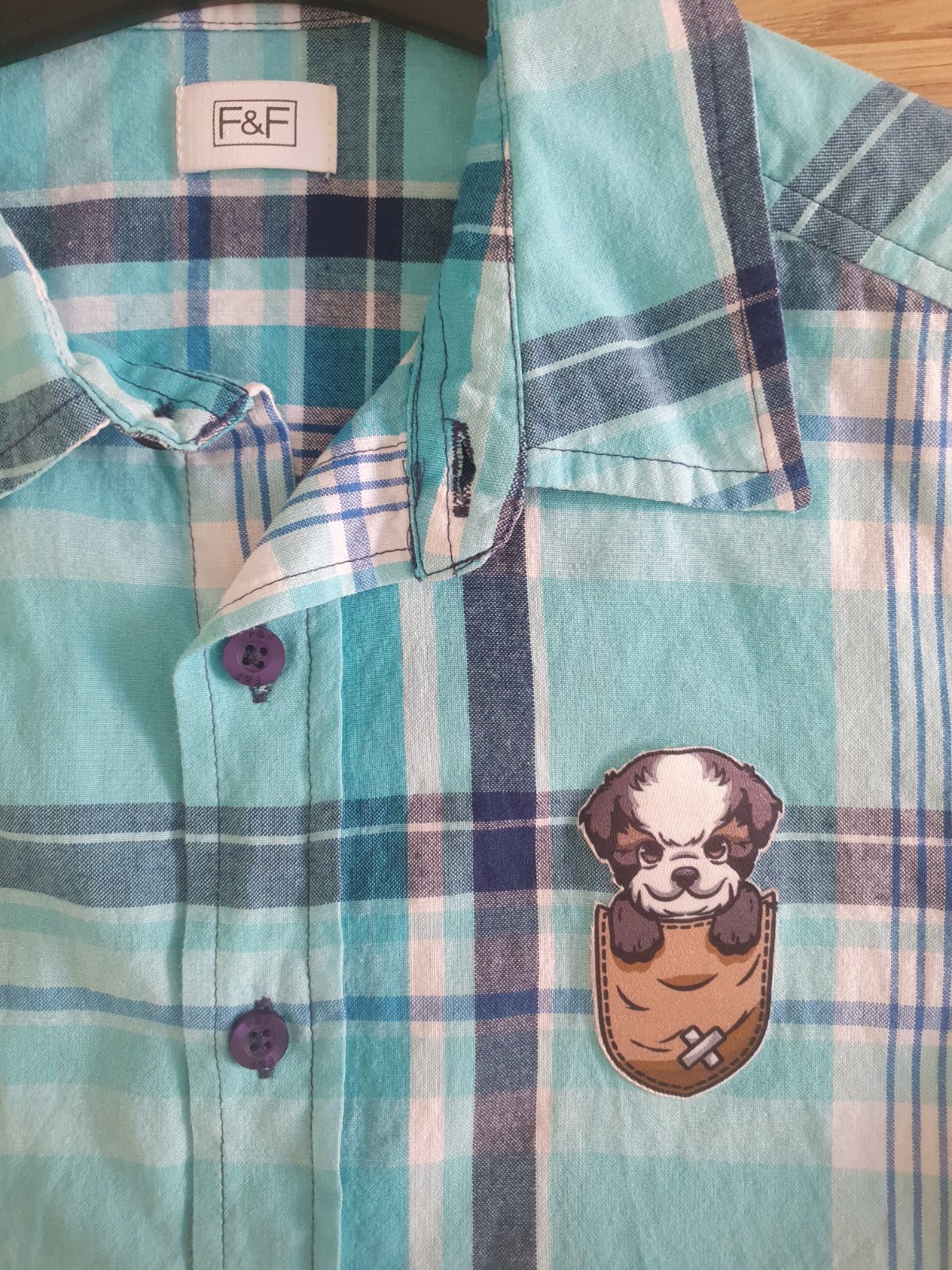 Povodna nasivka (lebka) vyparana, nahradena nazehlovackou psika (nakolko po vyparani zostala latka poskodena:). Nosene/prane s nazehlovackou, krasne drzi