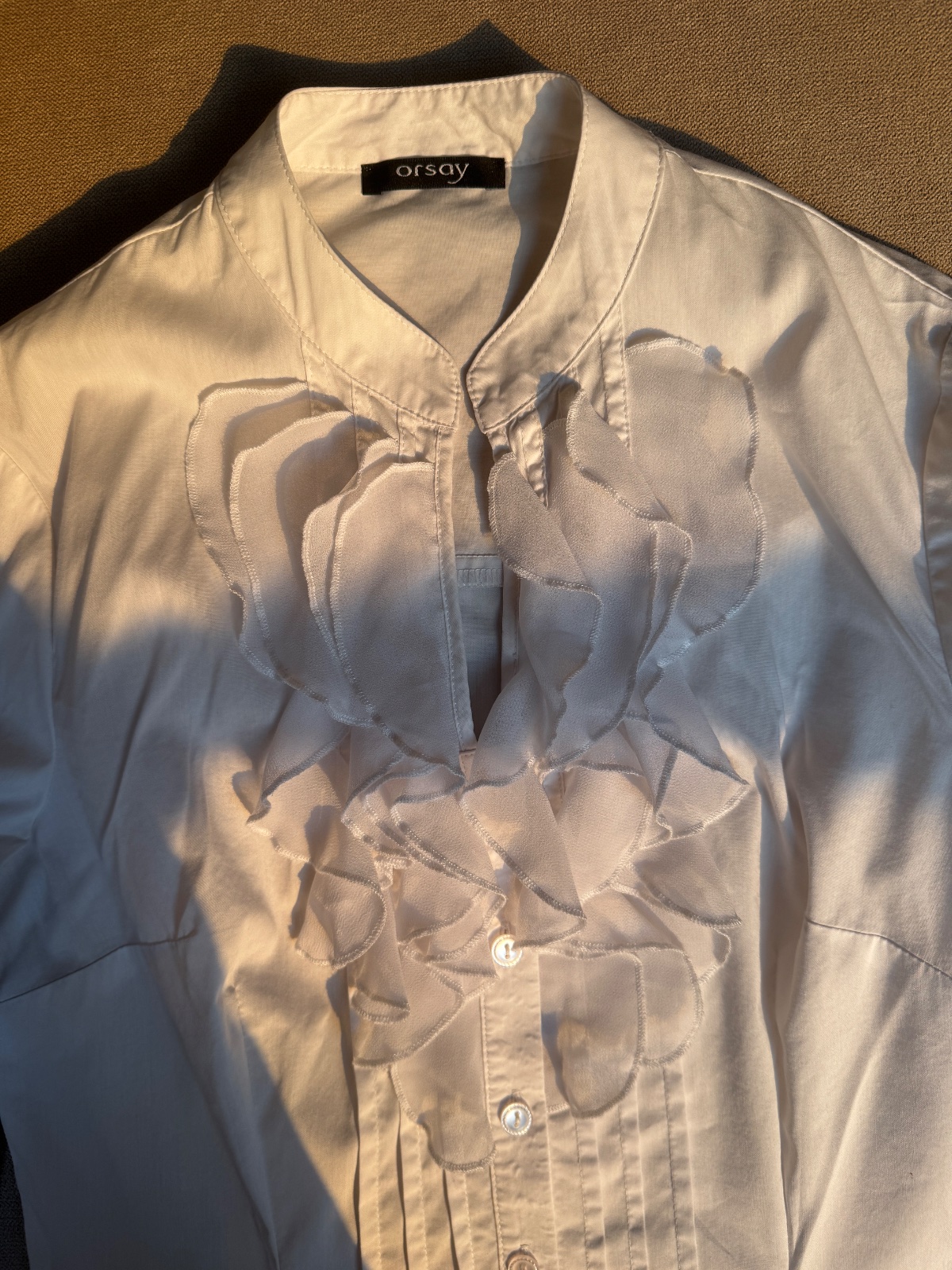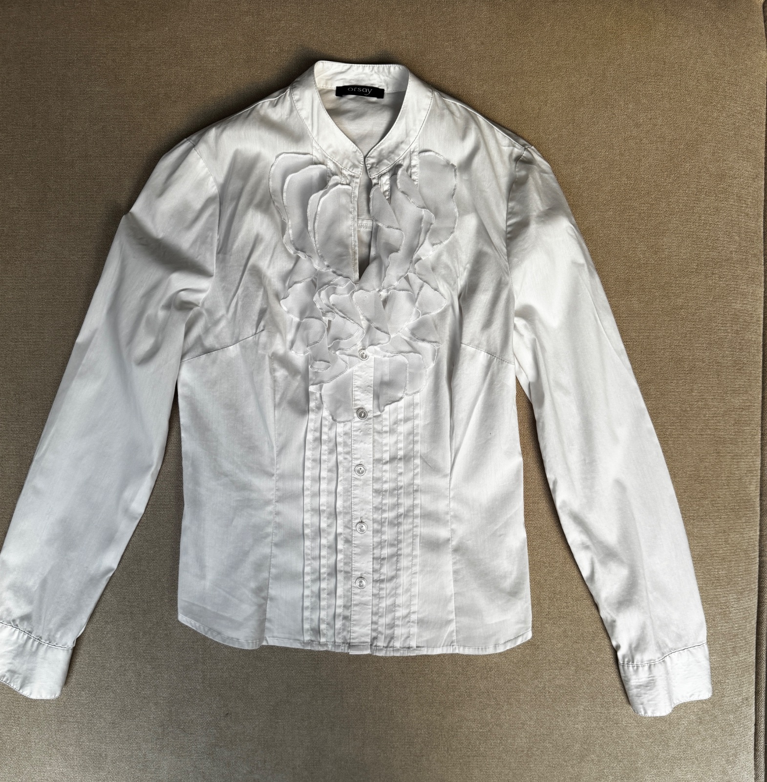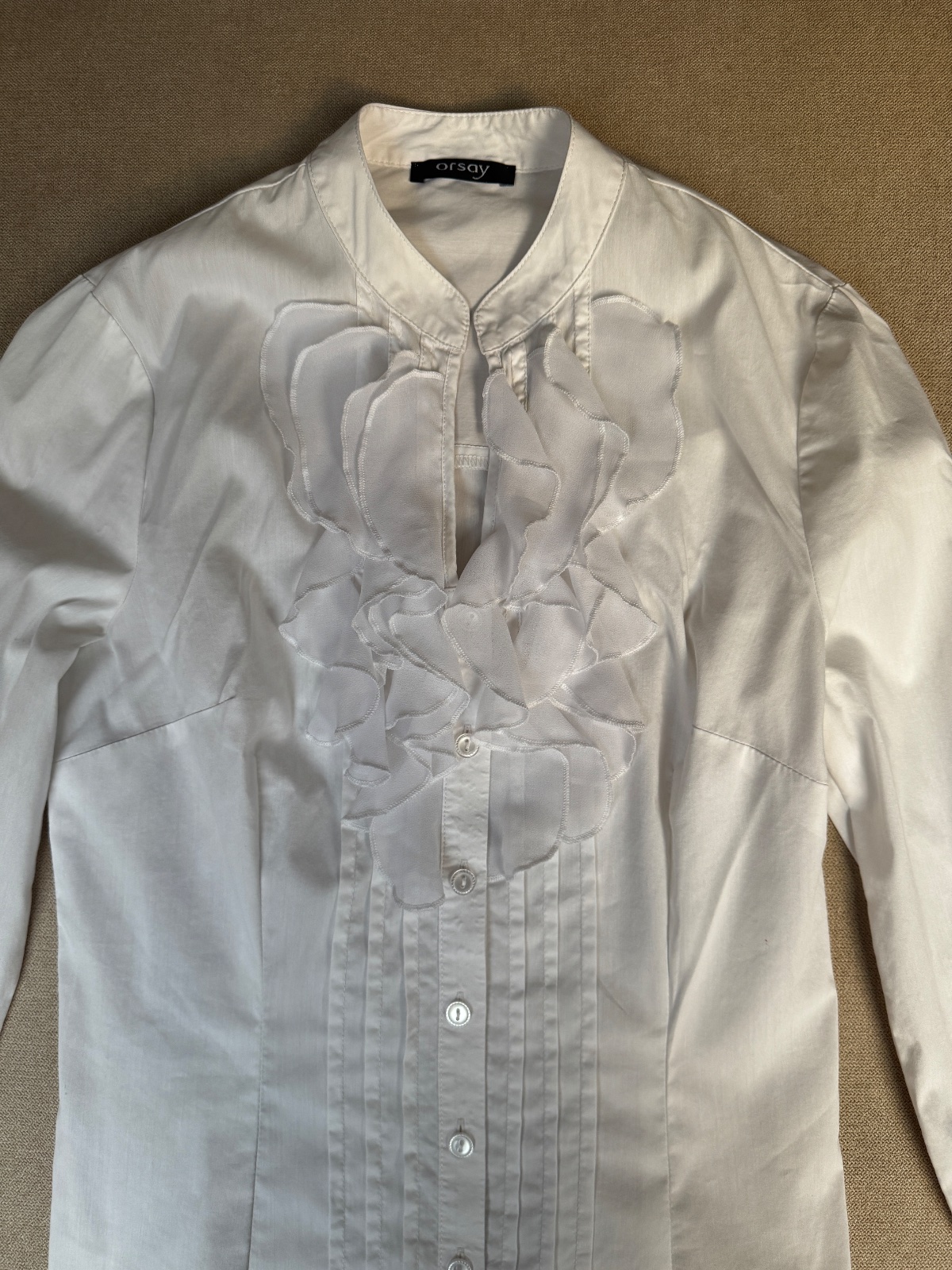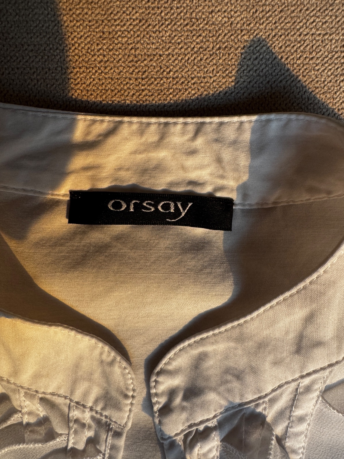 Predám elegantnú bielu košeľu značky Orsay vo veľkosti XS/S. Košeľa bola oblečená iba raz, inak len skladovaná, takže je vo výbornom stave – bez známok nosenia či poškodenia.