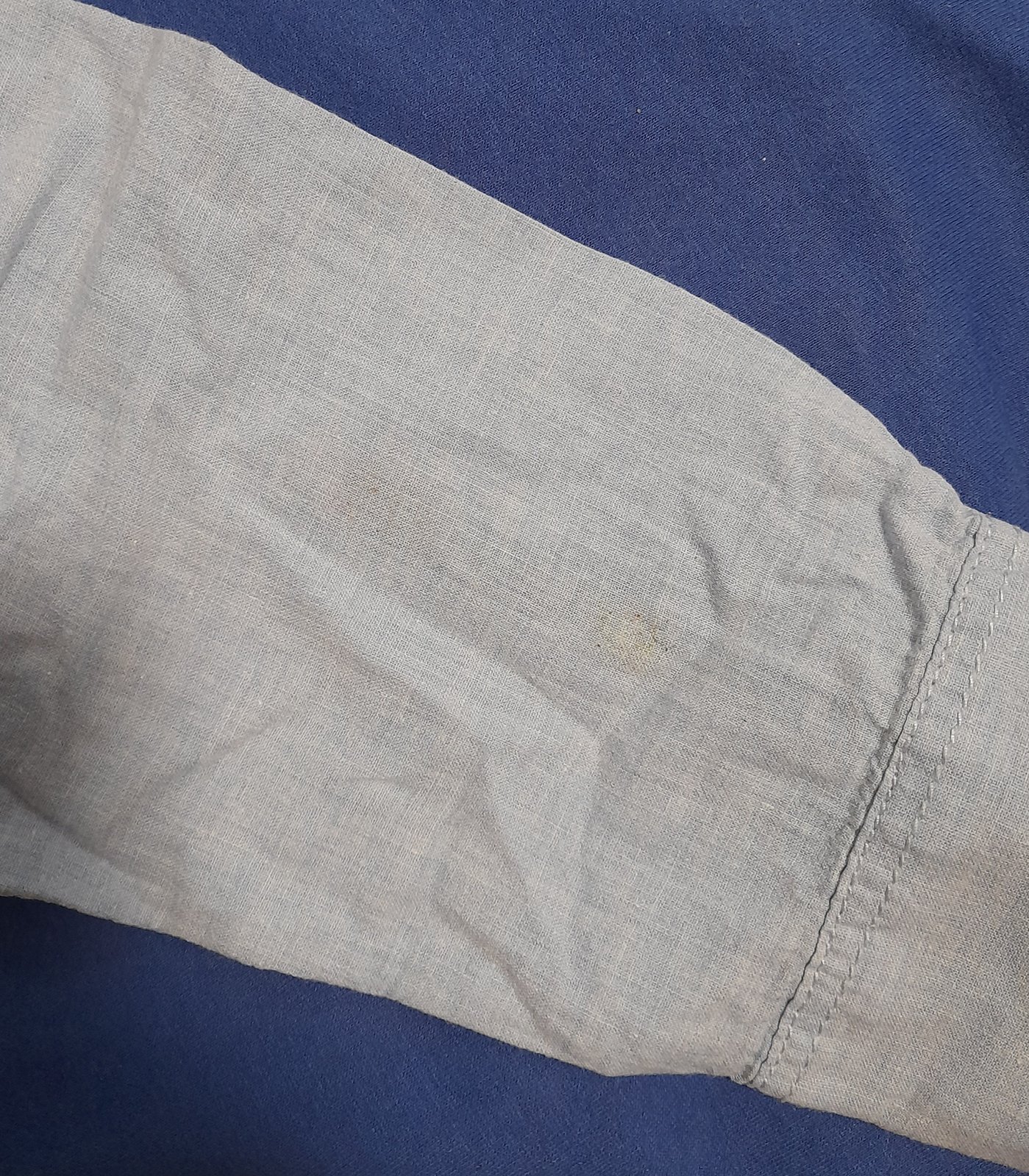 Nosená. Zo 100% bavlny. Na rukáve som si teraz pri fotení všimla fľak, vyzerá, že vznikol voľakedy pri žehlení. Zohľadnené v cene.