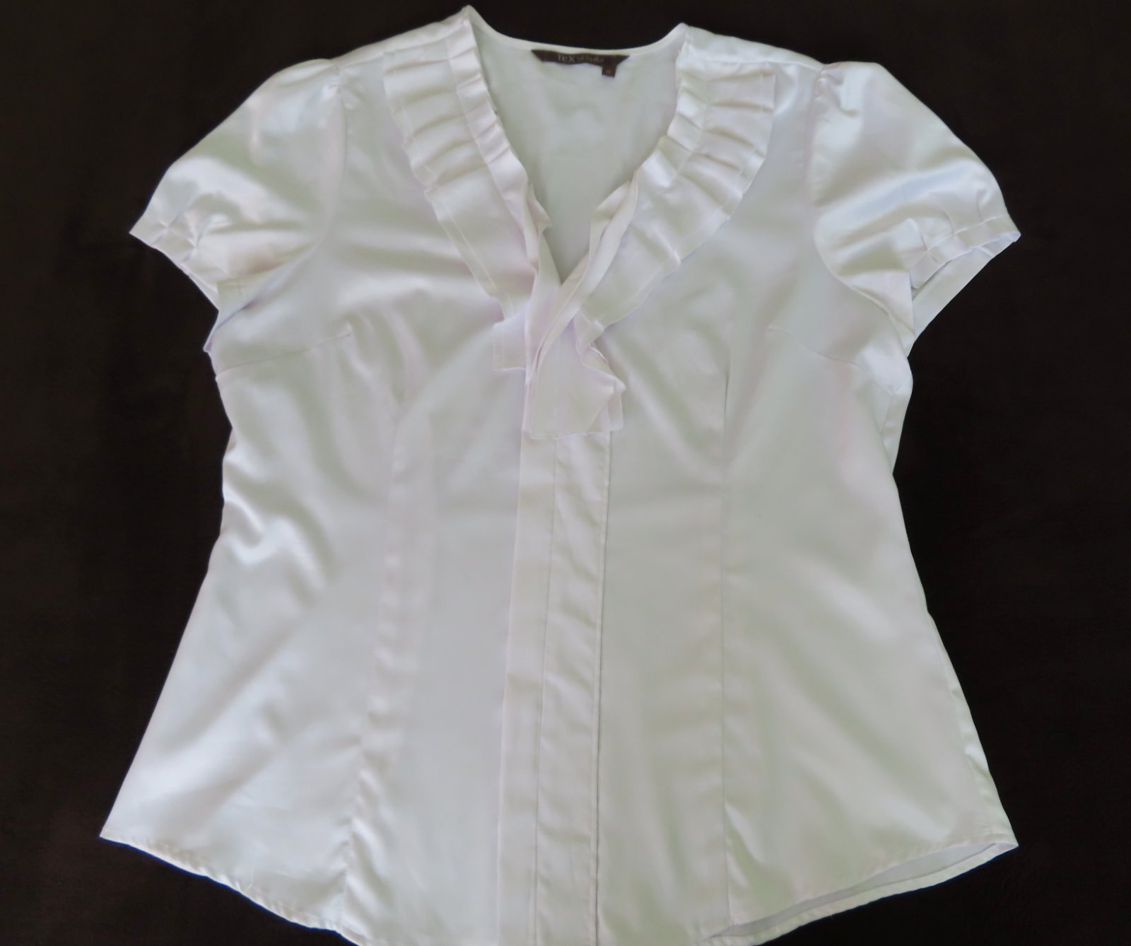 Dámska hodvábna blúzka MaxAzria, veľ. XL - rozmery: dĺžka 65cm, pod pazuchami 2x55cm, rukáv krátky - od pleca 21cm.