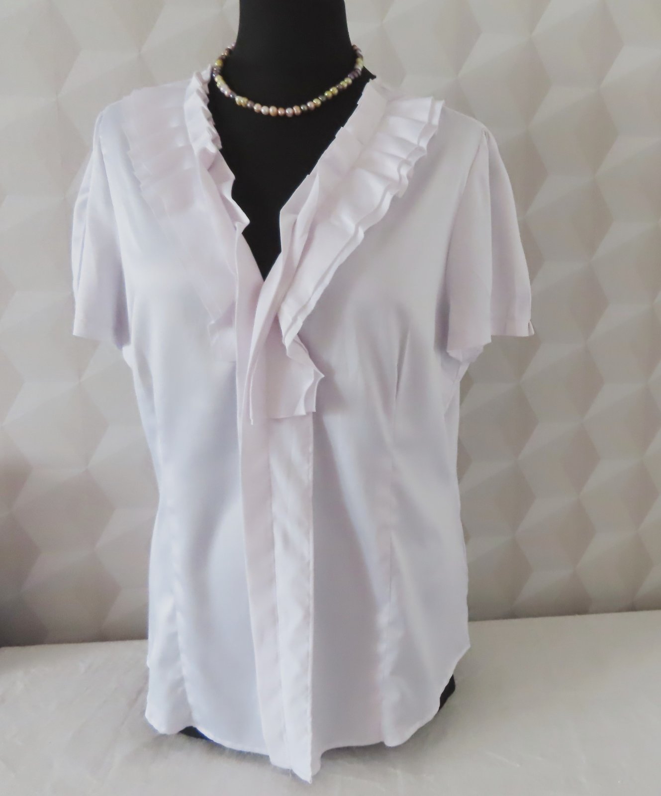 Blúzka je jemnučká, krásna. Vpredu pekne skladaná. Strih tvaruje postavu.