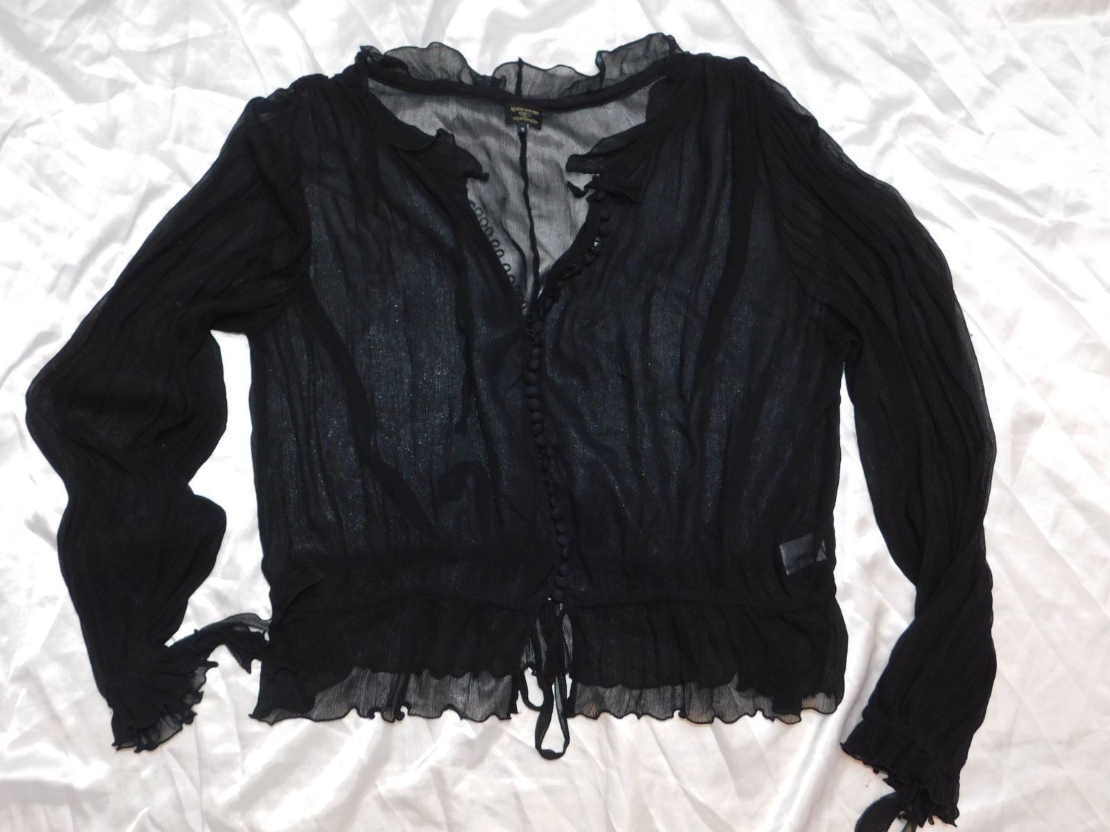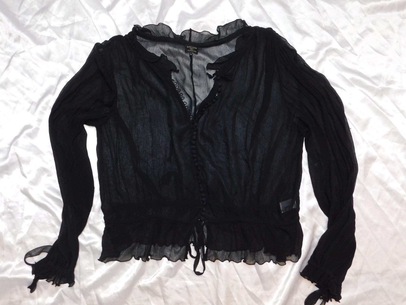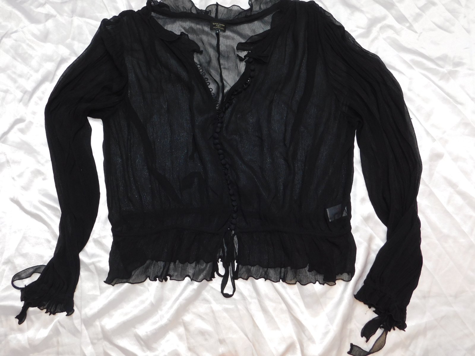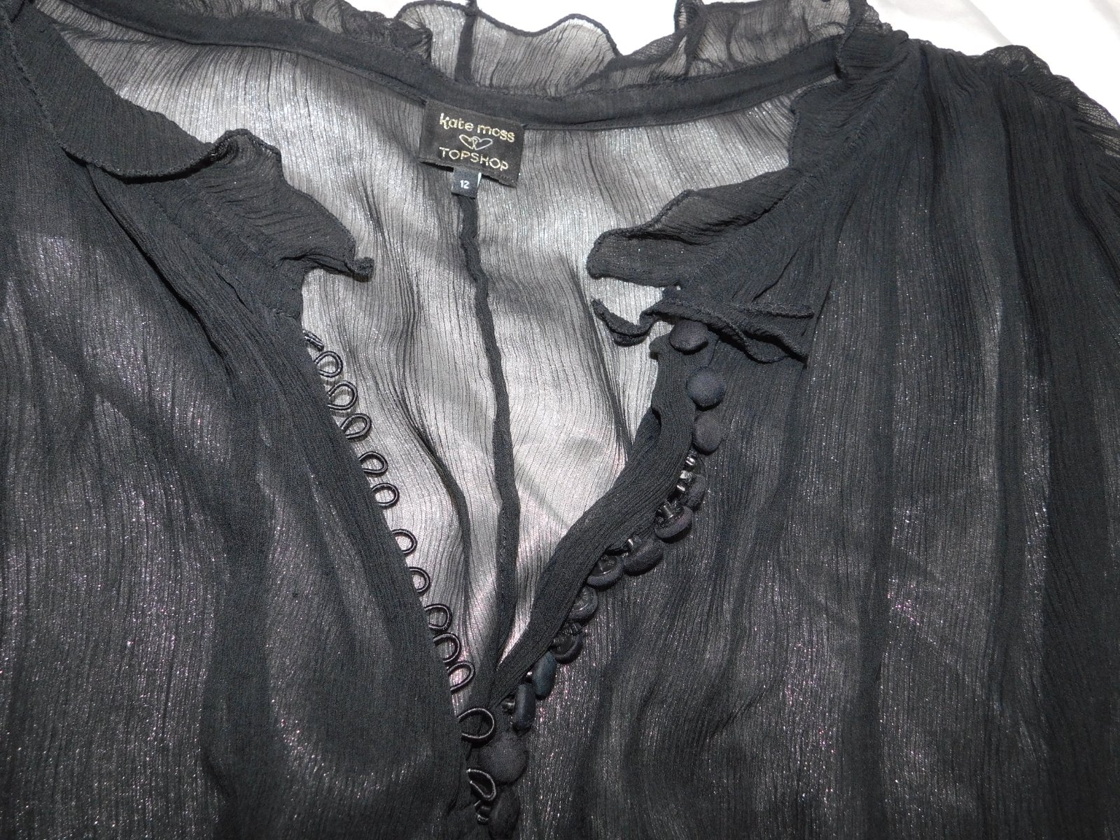 KATE MOSS Trendy hodvabna bluzka čiernej farby,z mierne priesvitneho materialu.100%hodvab.super stav,ako nova. moj