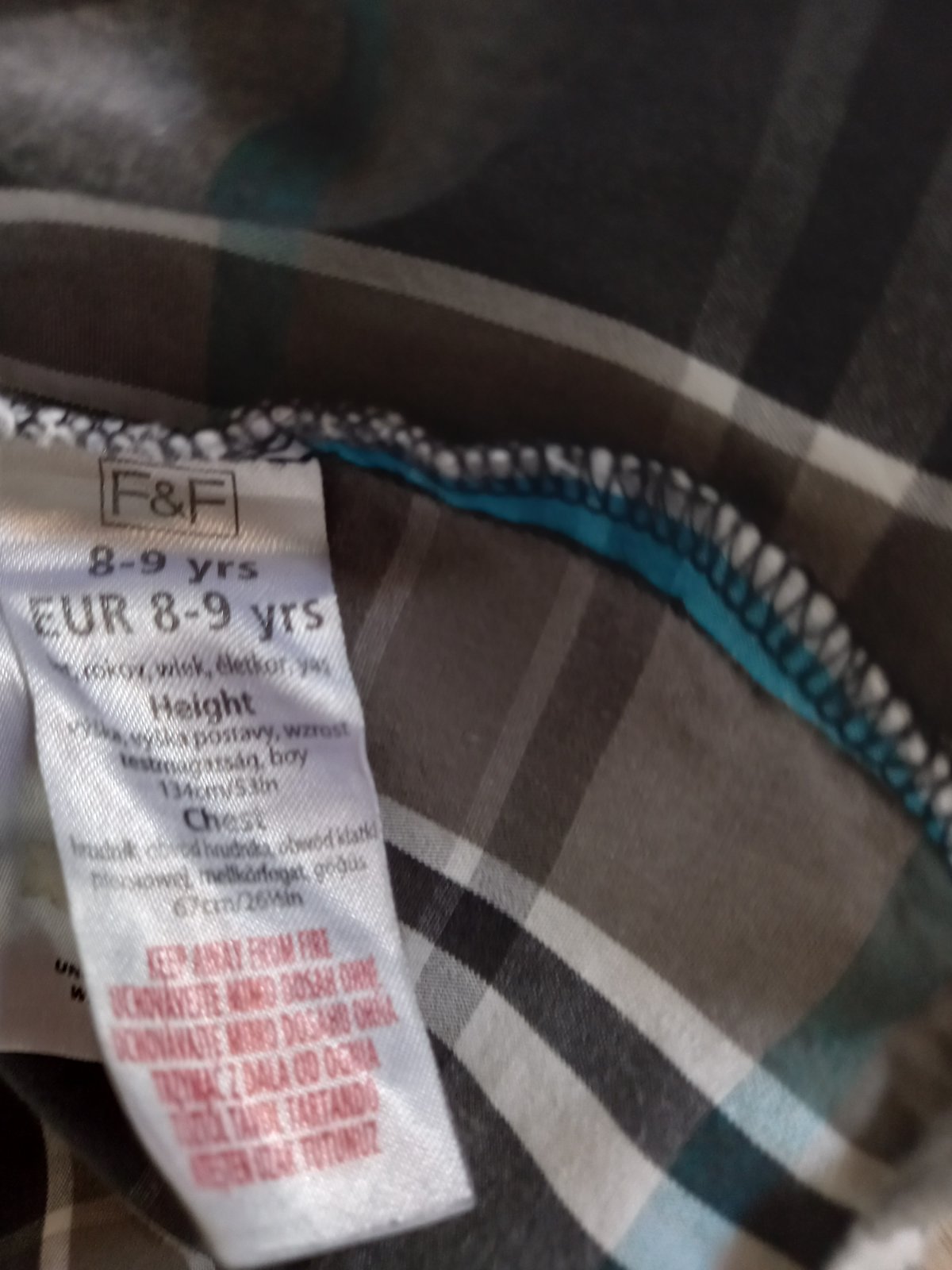 Kosela, F&F, vel.134, 8-9r., adi 2x oblecena, bezne znamky nosenia, nema pskodenie, 100 % bavlna, 53 cm pd, sirka pod rukavmi 41cm, rukav a rameno 10 a 46 cm,