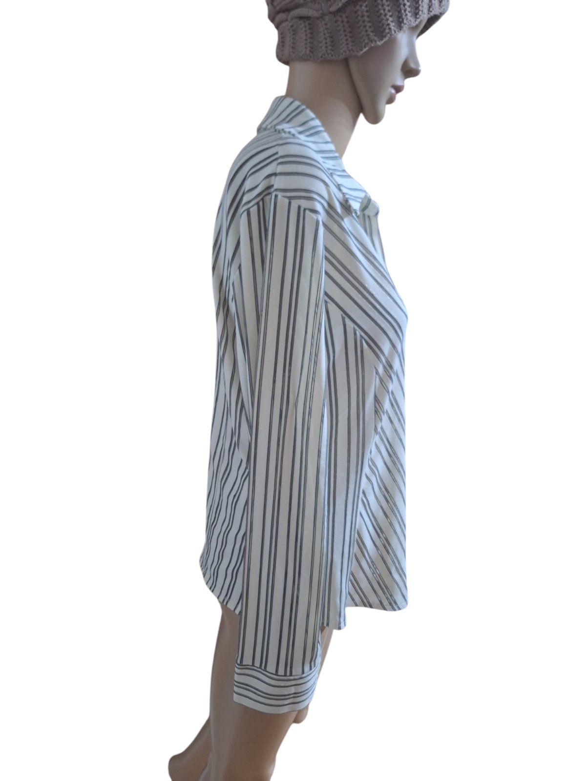 Dámska pásikavá blúzka značky Bemar. Je elastická. Dĺžka je 60cm,obvod hrudníka je 106cm a obvod pása je 98cm. Dĺžka rukáva je od krku 75cm. kód 908
