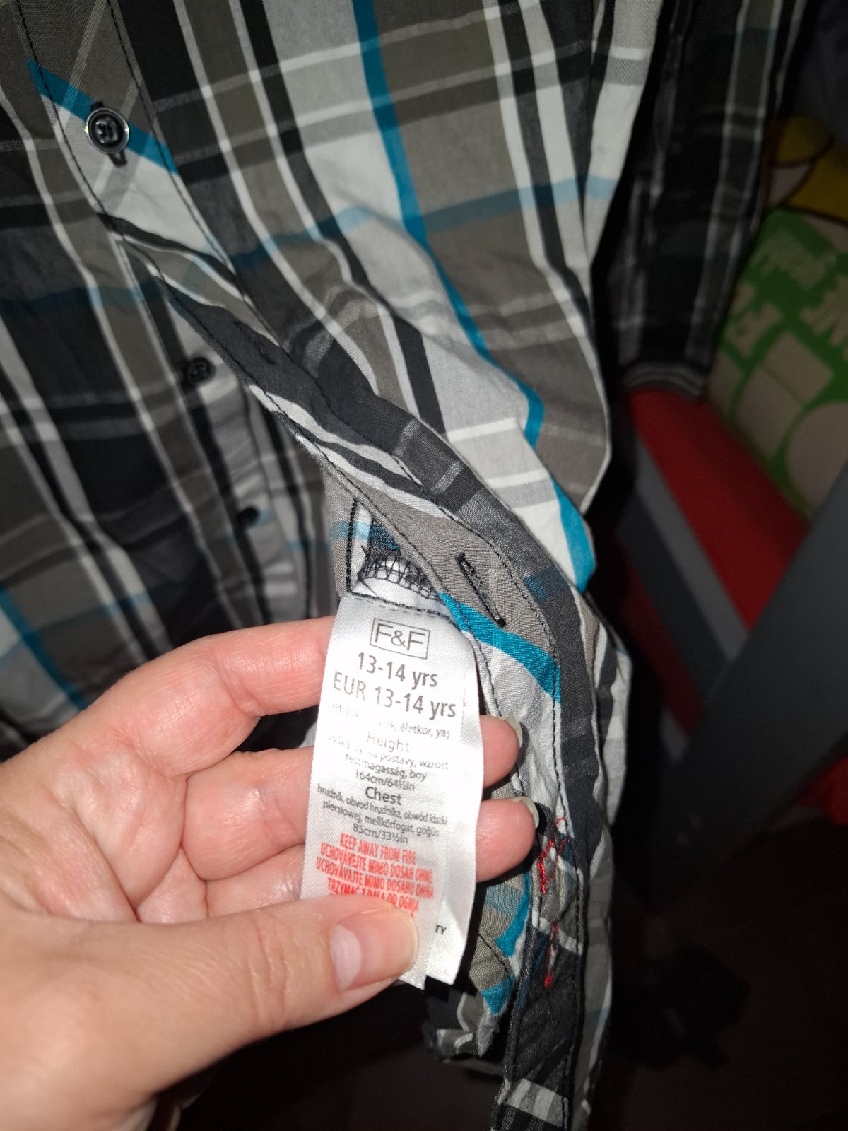 Zateplená košeľa, vhodná pre vek 13-14 rokov.