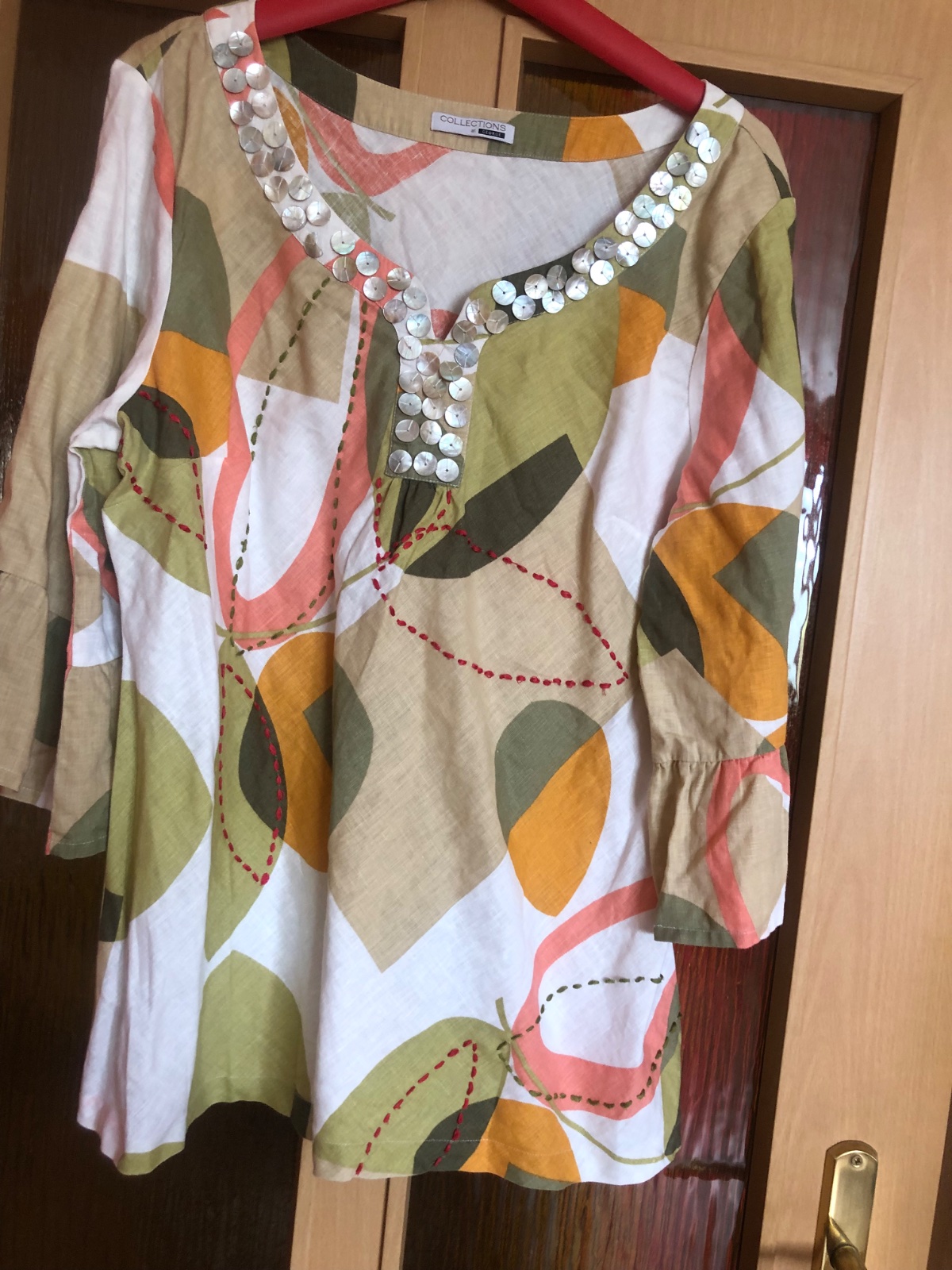 Krásny elegantný top pre dámy Príjemný, pohodlný, netlačí voľný strih, ktorý zakrýva všetky nedostatky. Príjemný model. Veľkosť : 42, 44, 46, 48, 50 Poľská značka, vyrobené v Poľsku. Farba ako na f...