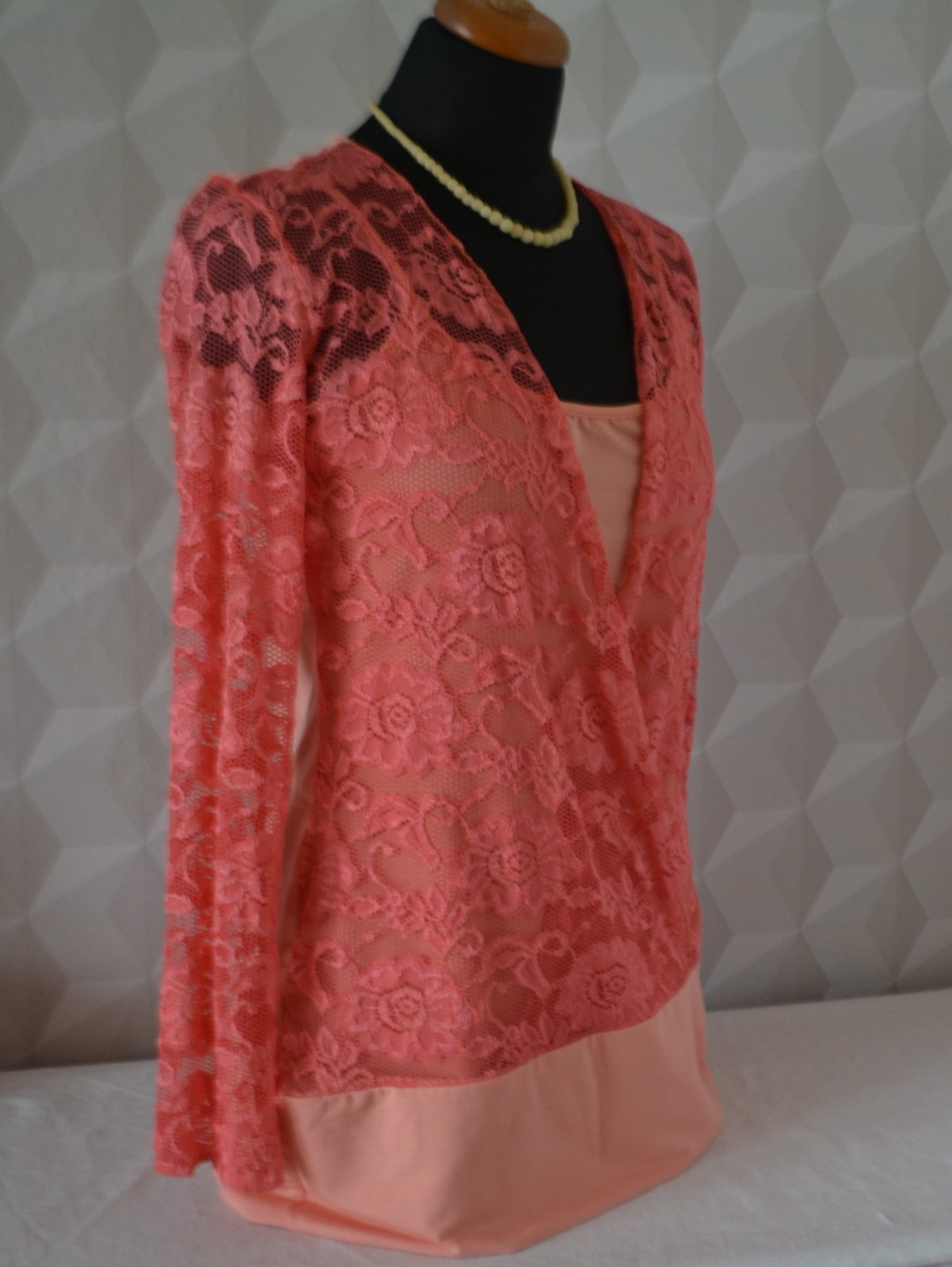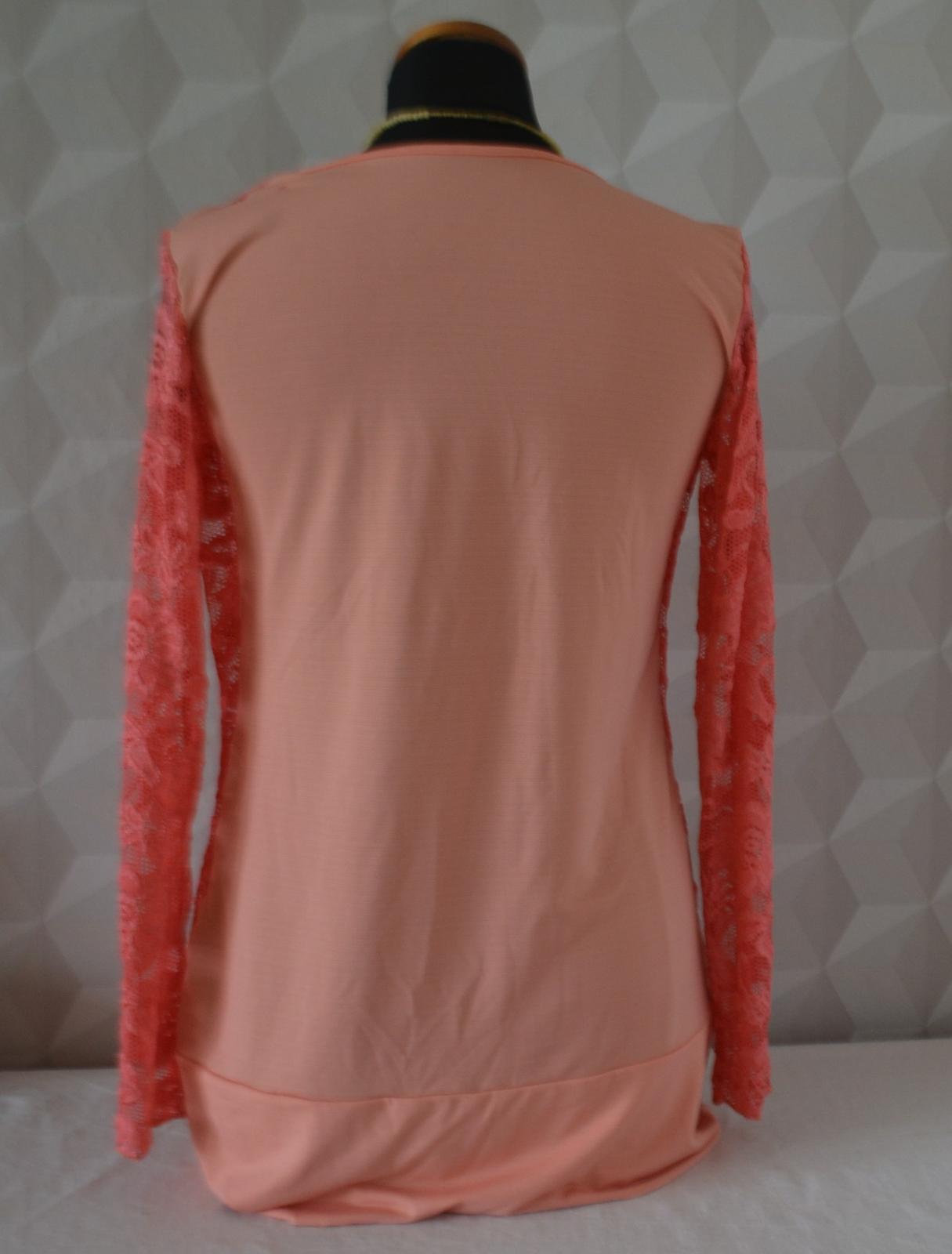 Dámsky dvojvrstvový top lososovej farby, česká značka Jaal, kolekcia Fenia, veľ. L , rozmery: dlžka 70cm, pod pazuchami 2x48cm, rukáv 59/47cm.