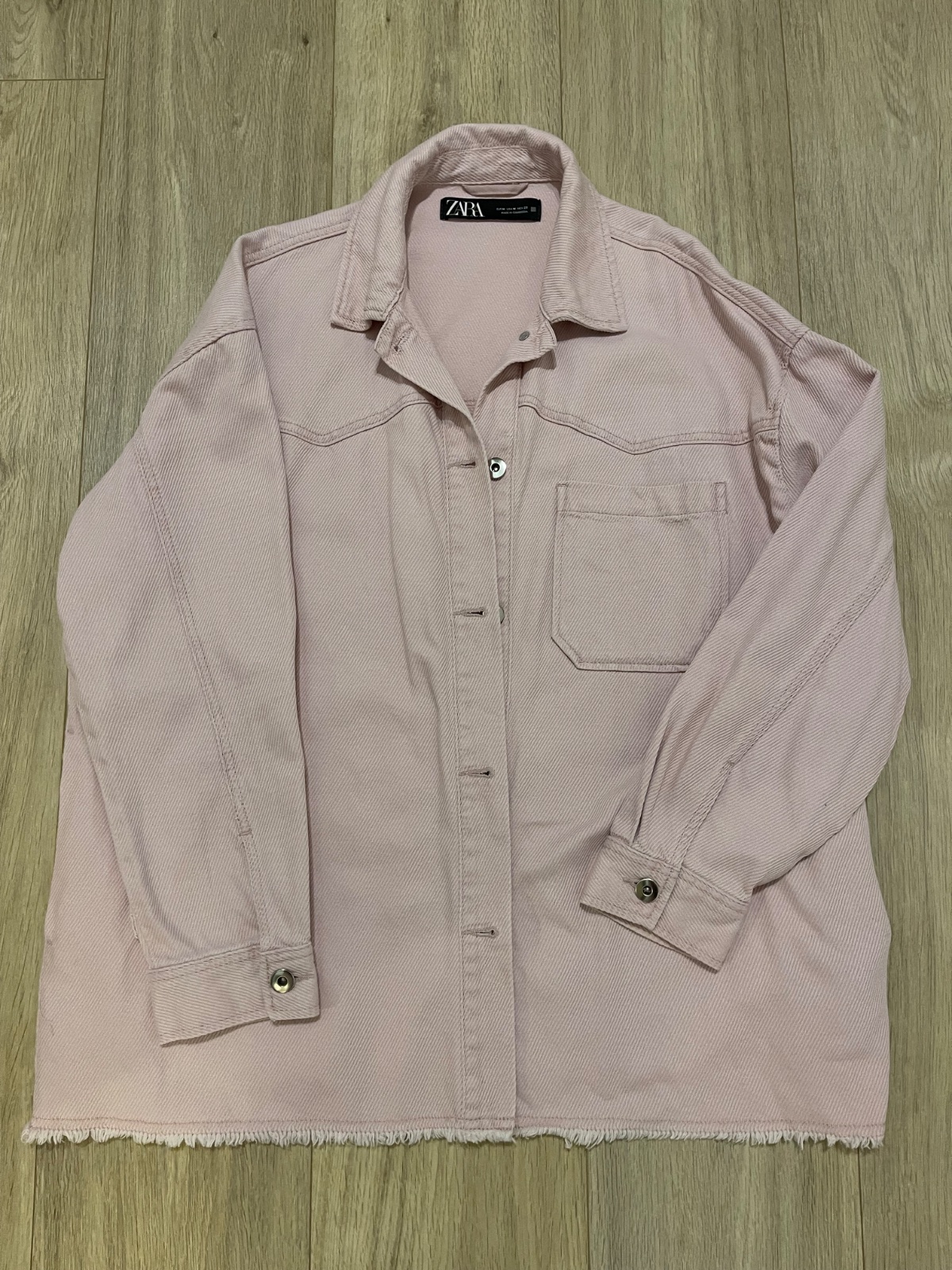 Bledučko ružová /pudrová/ blúzka zn. Zara, veľkosť S, ale je skor vacsie S až M Pekne riečené rukávy, s límčekom na gombíčky. Dvakrát vzatá, je voľnejšia. Ja ju mám aj v čiernom.