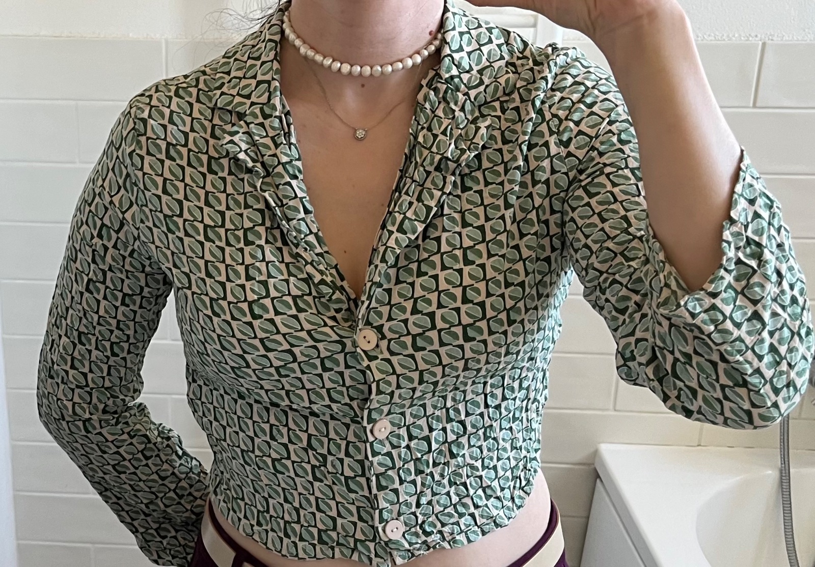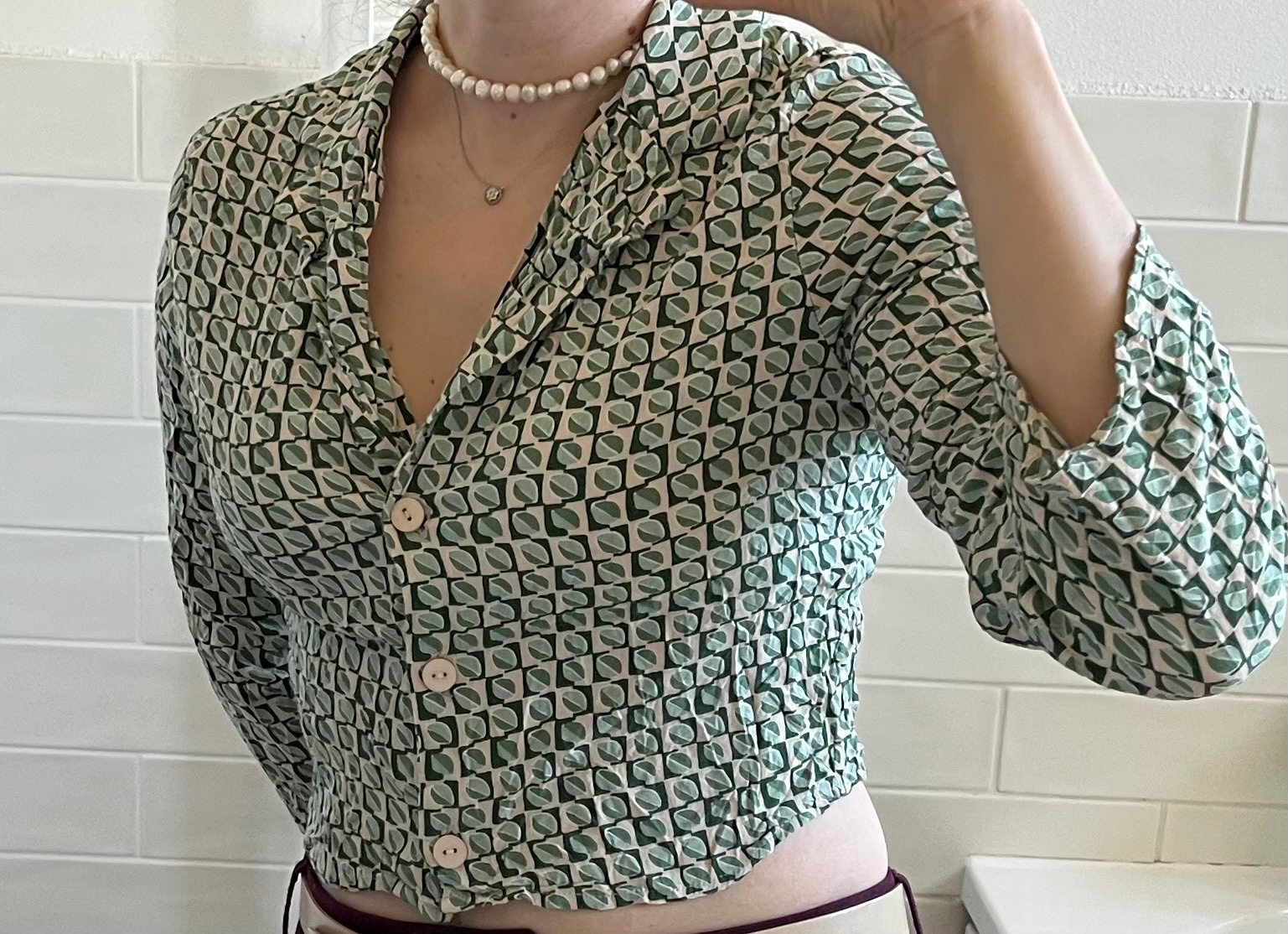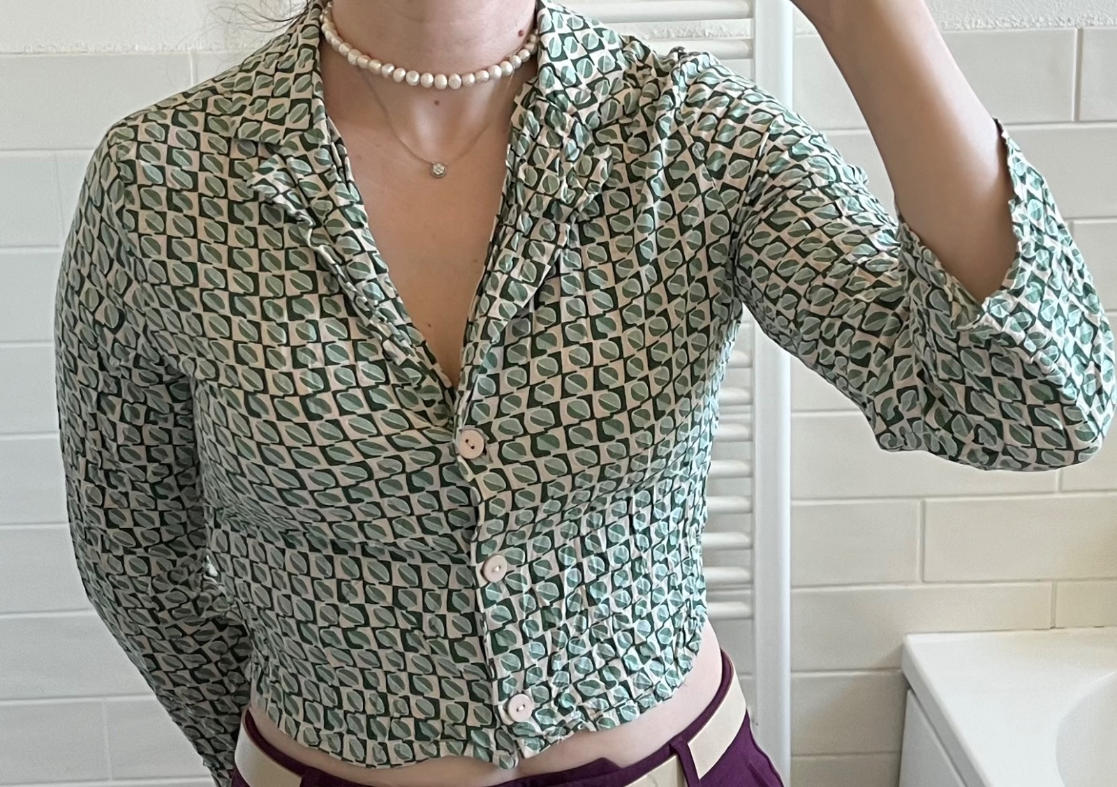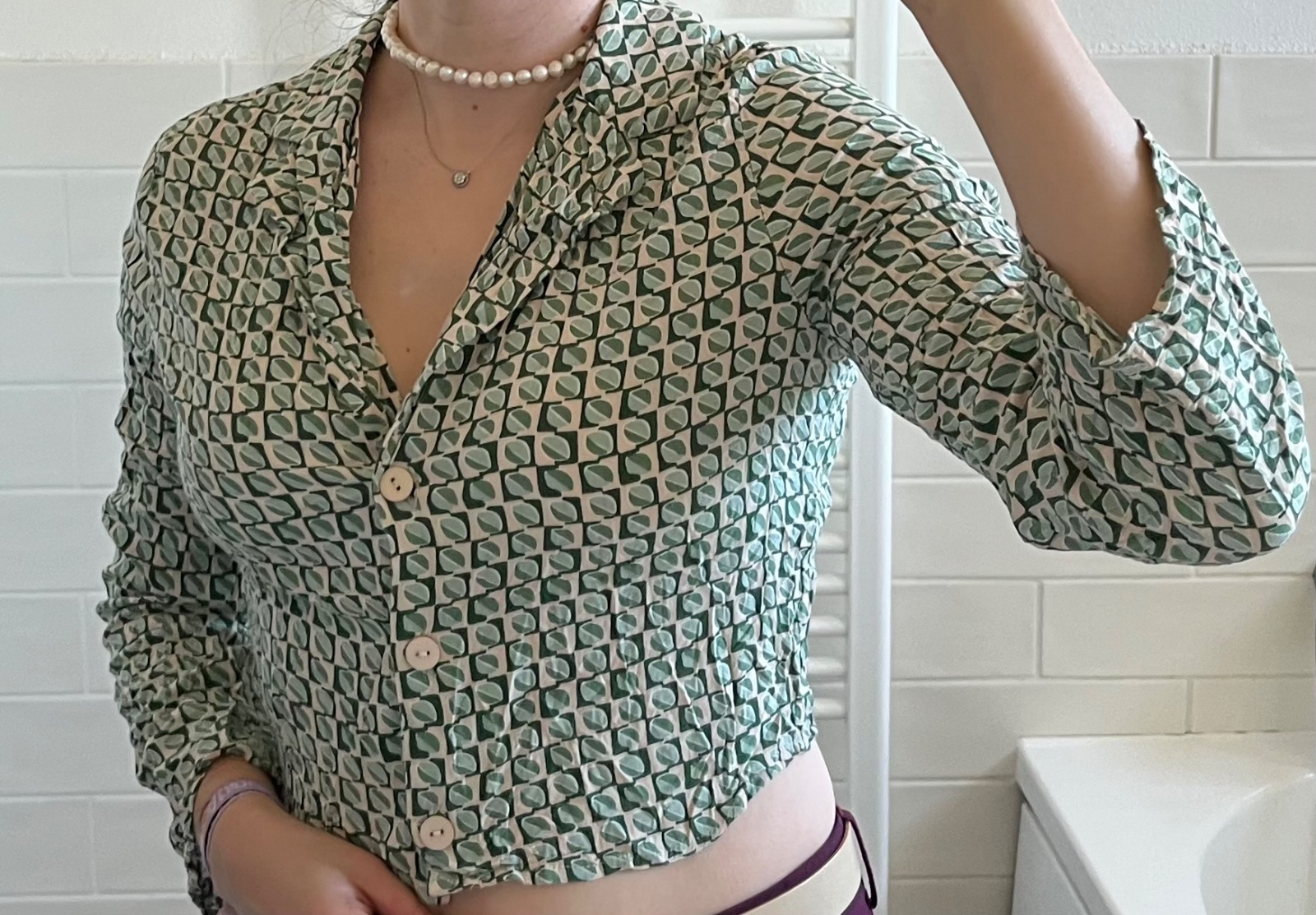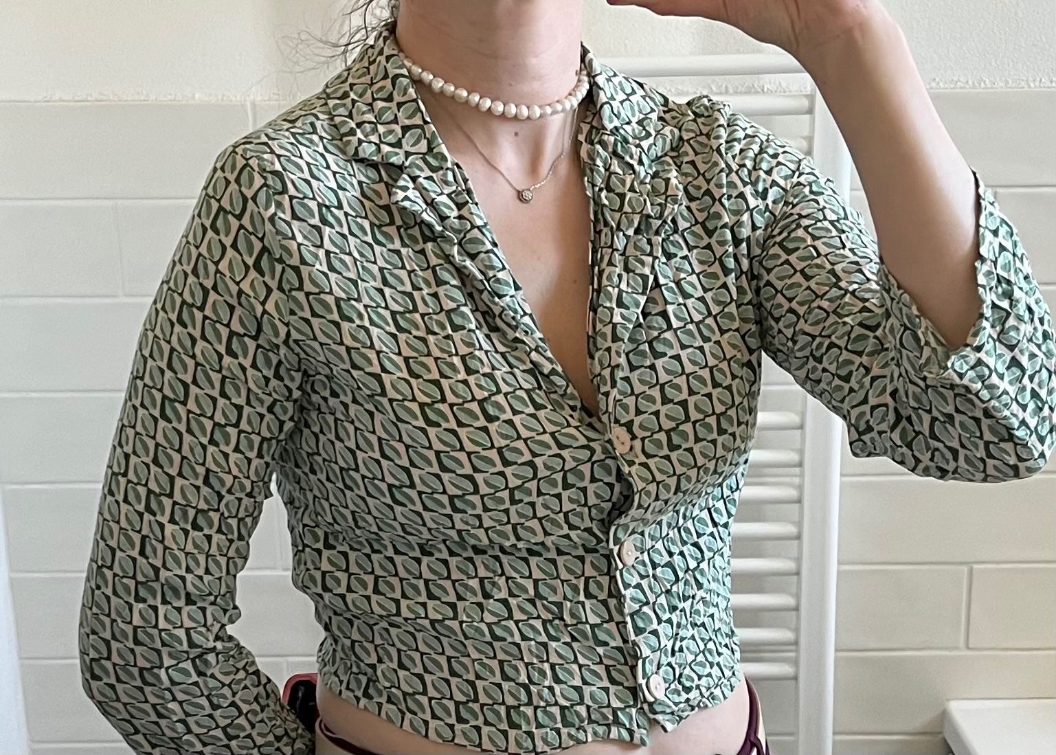 - párkrát nosená zeleno - béžová vzorovaná blúzka/košeľa