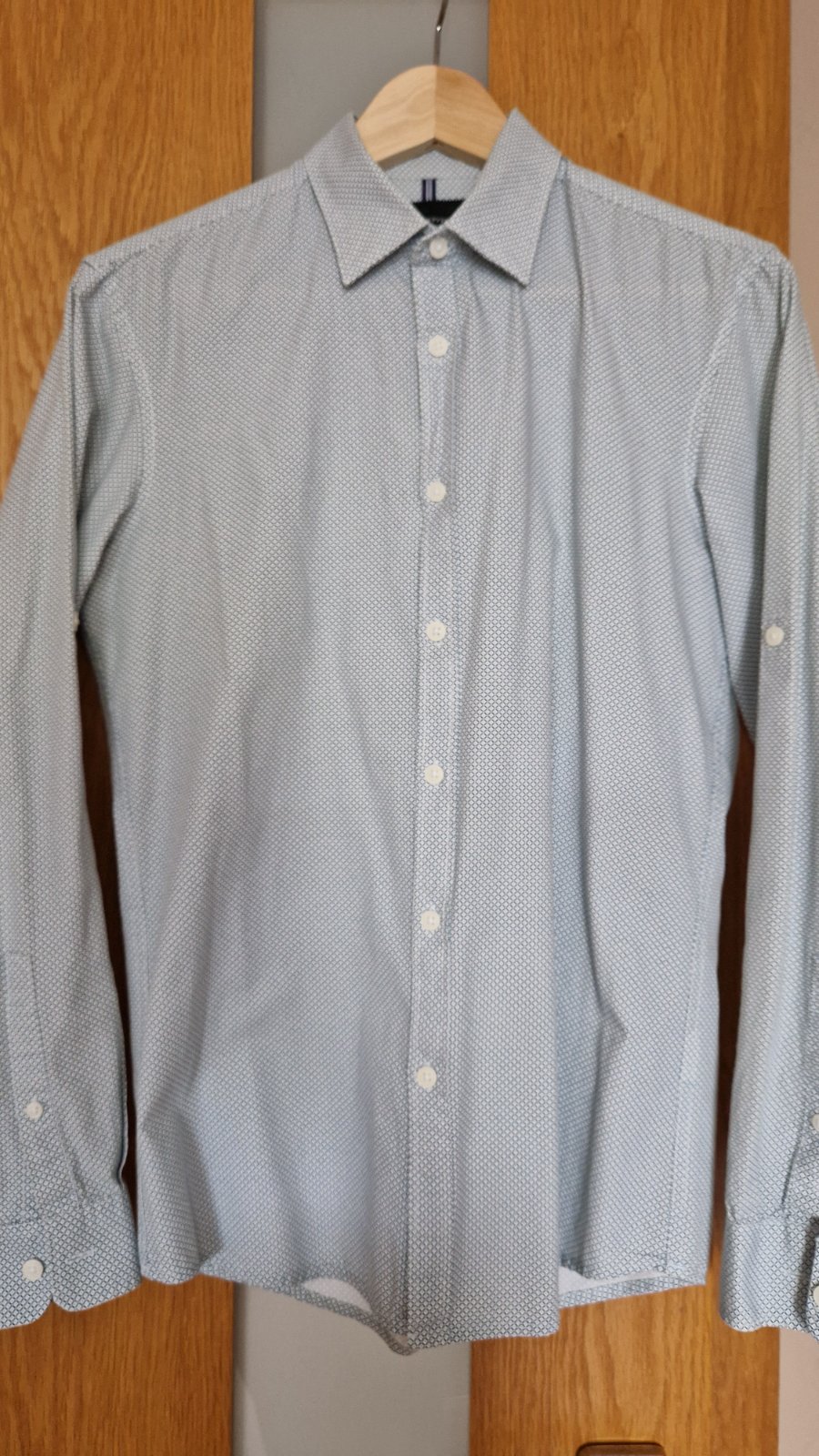 Párkrát oblečená košeľa. Dobrý stav. Slim fit. Nosenie vidno trosšku okolo goliera. Inak bez poškodení. Mám aj iné košele v Top stave po synovi. Pozrite inzeráty.