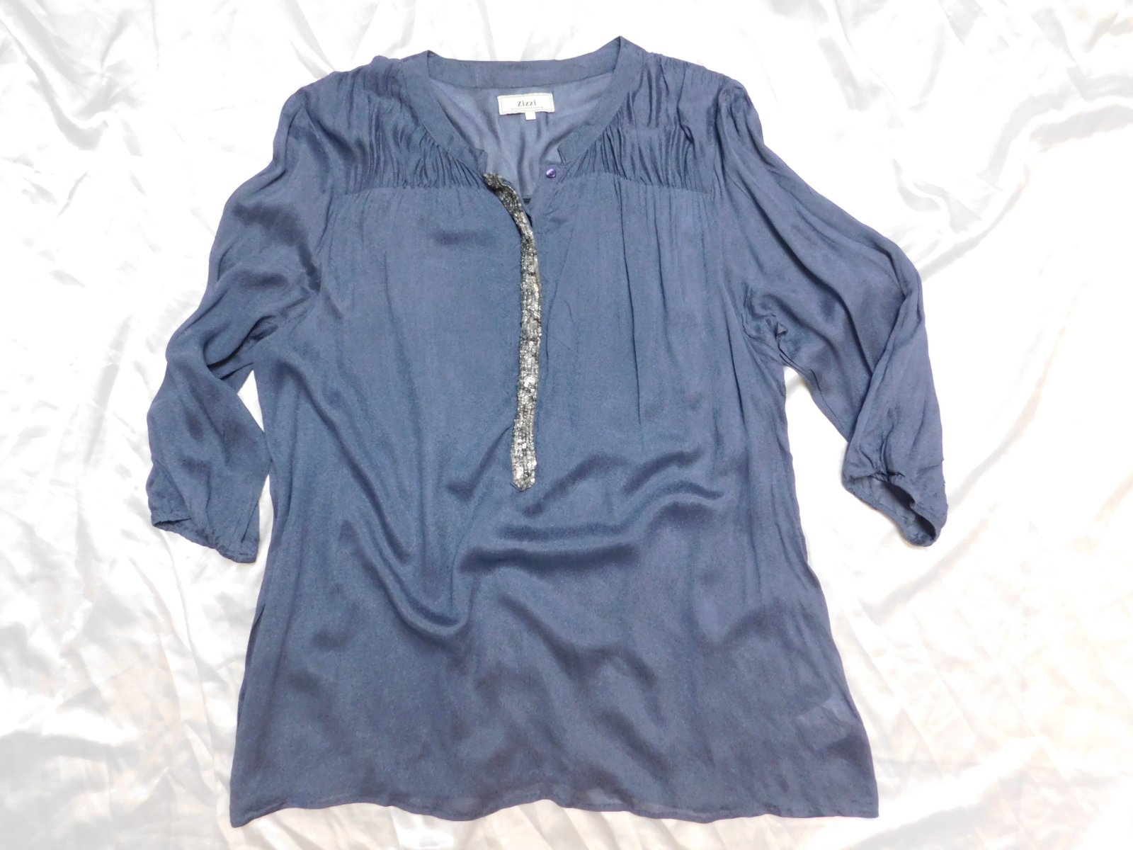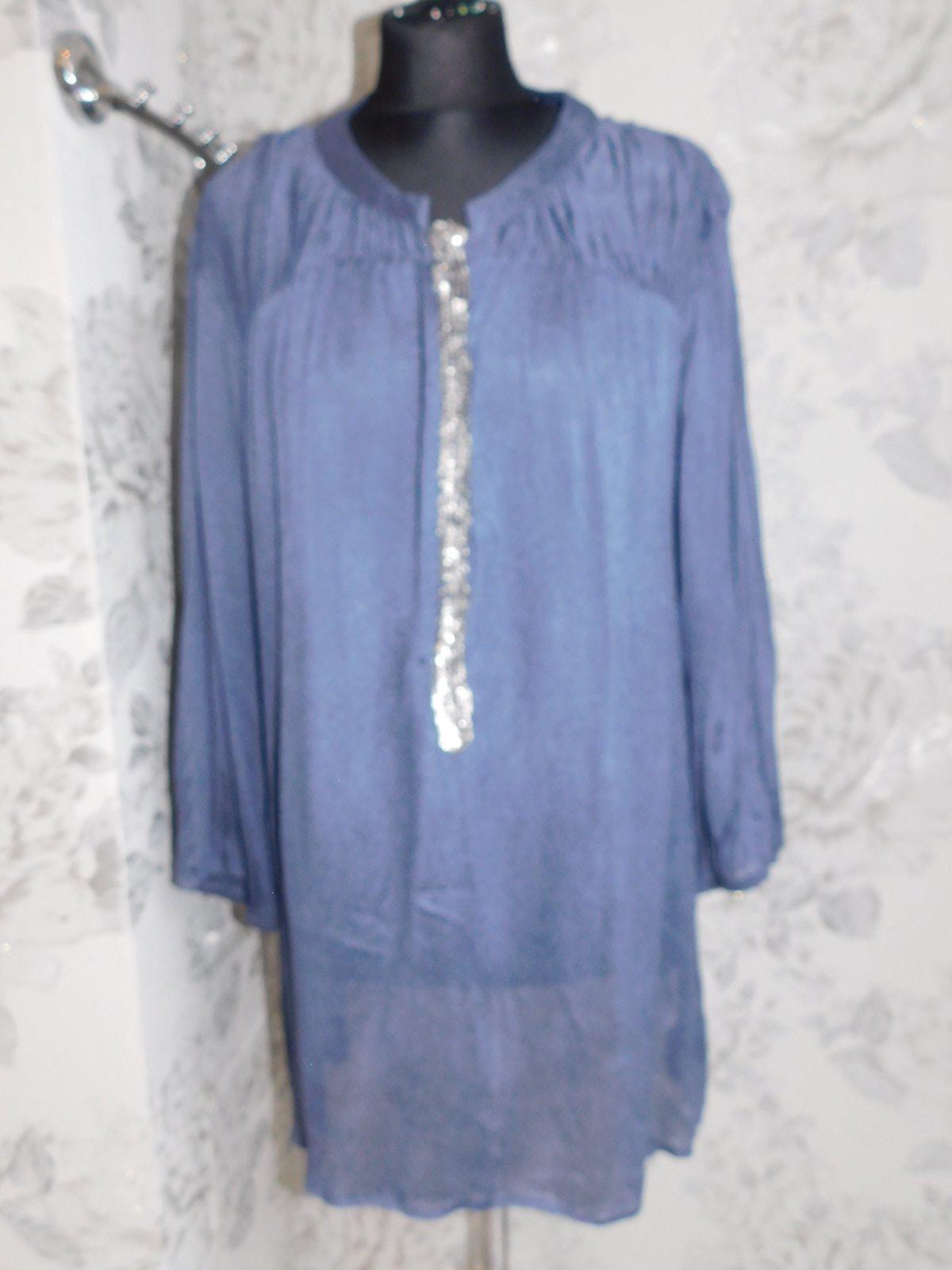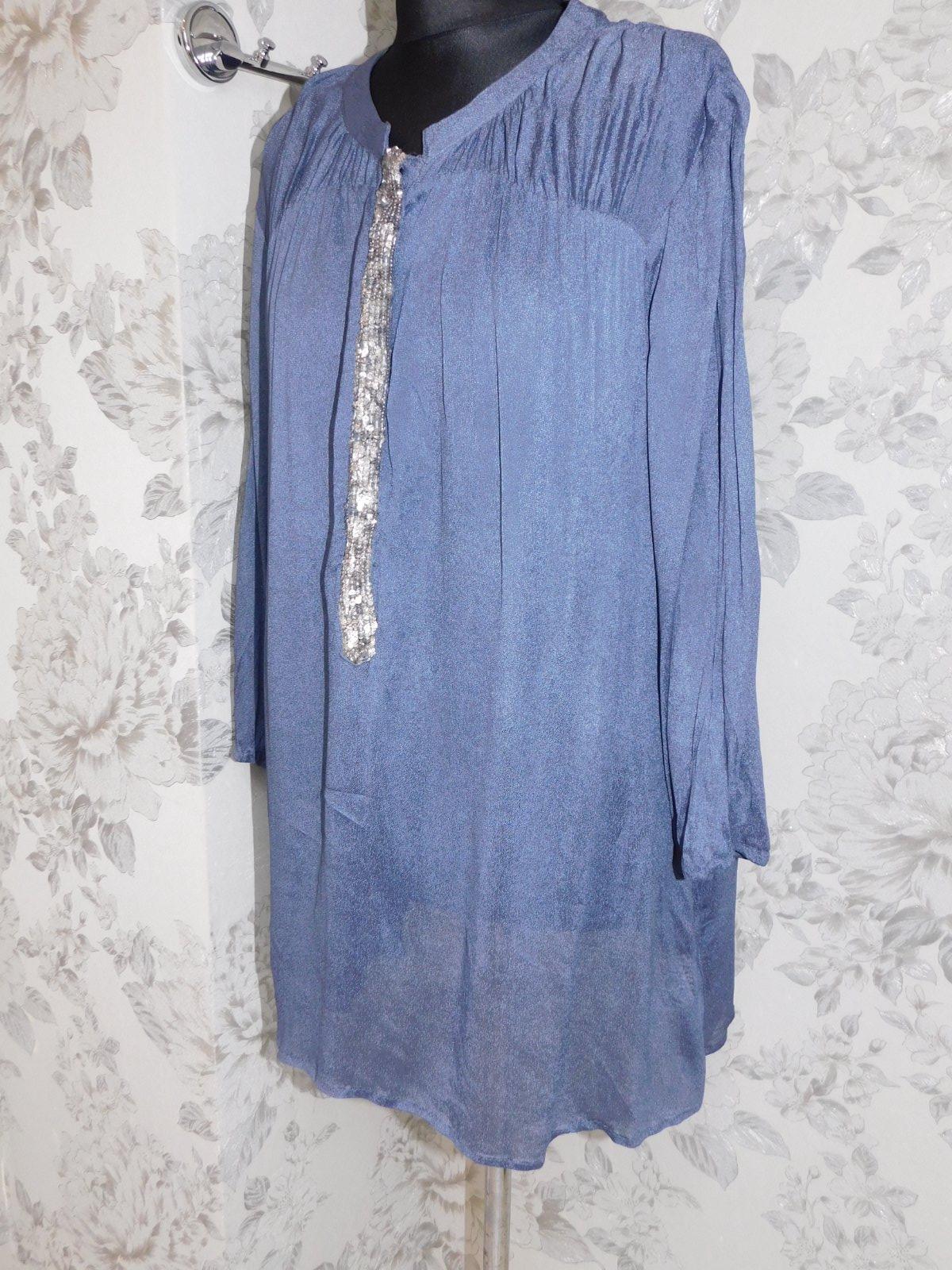 ZIZZI Kvalitna pekna tunikova bluzka šedo modrej farby,kratka gombikova lega zdobena flitrami.100%viskoza.ako nova. mo