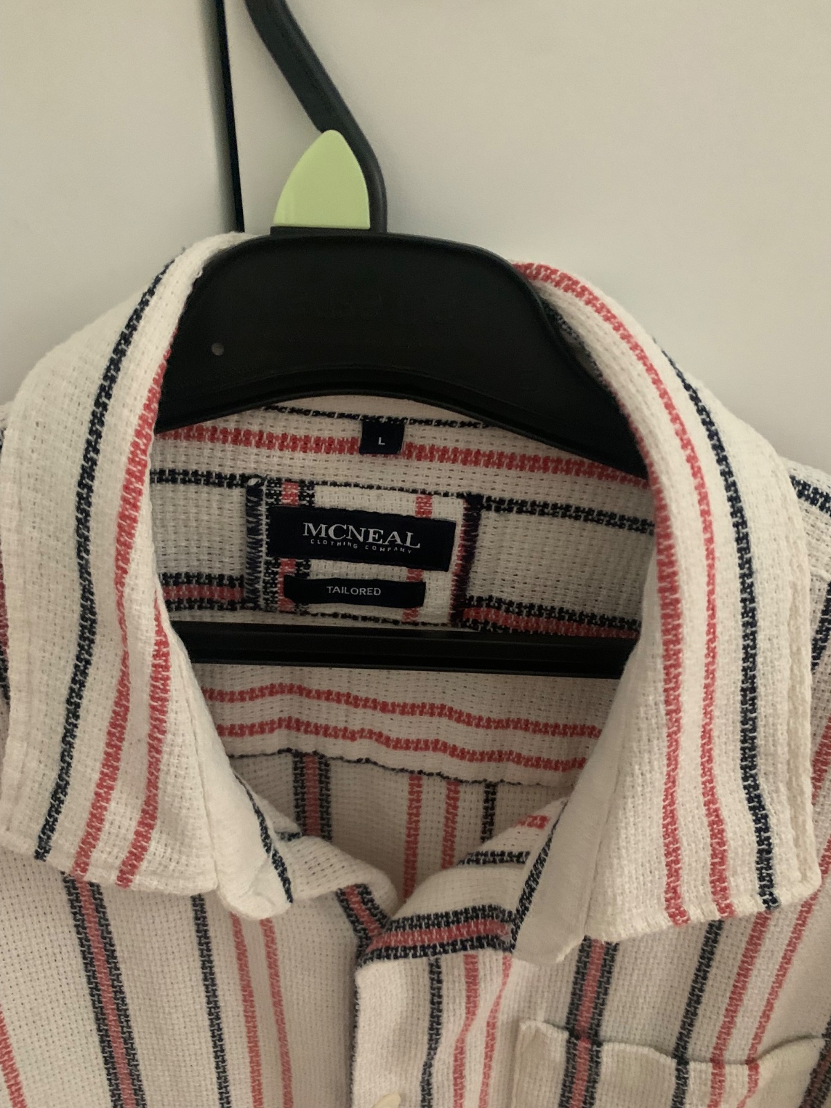 Zapínanie na patenty, slimfit, veľkosť L, materiál bavlna. Miery: širka cez ramena - 46 cm širka cez hrudnik - 56 cm dlžka - 70 cm