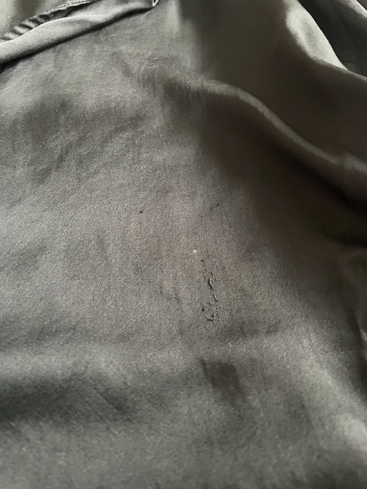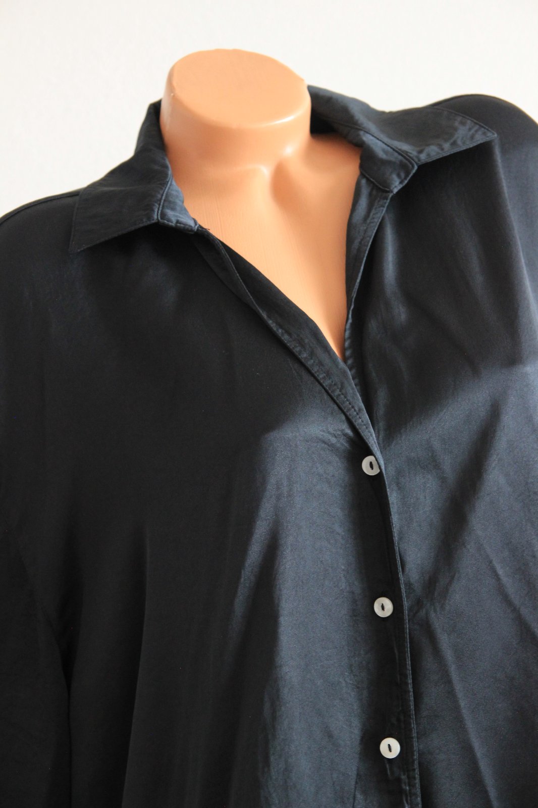 Čierna saténová blúzka od exkluzívnej značky American Vintage, oversize strih. Vpredu je na jednom mieste jemne vydratá - inak pekný stav. Materiál je 100% acetát - umelý hodváb. Veľkosť je uvedená M/L.