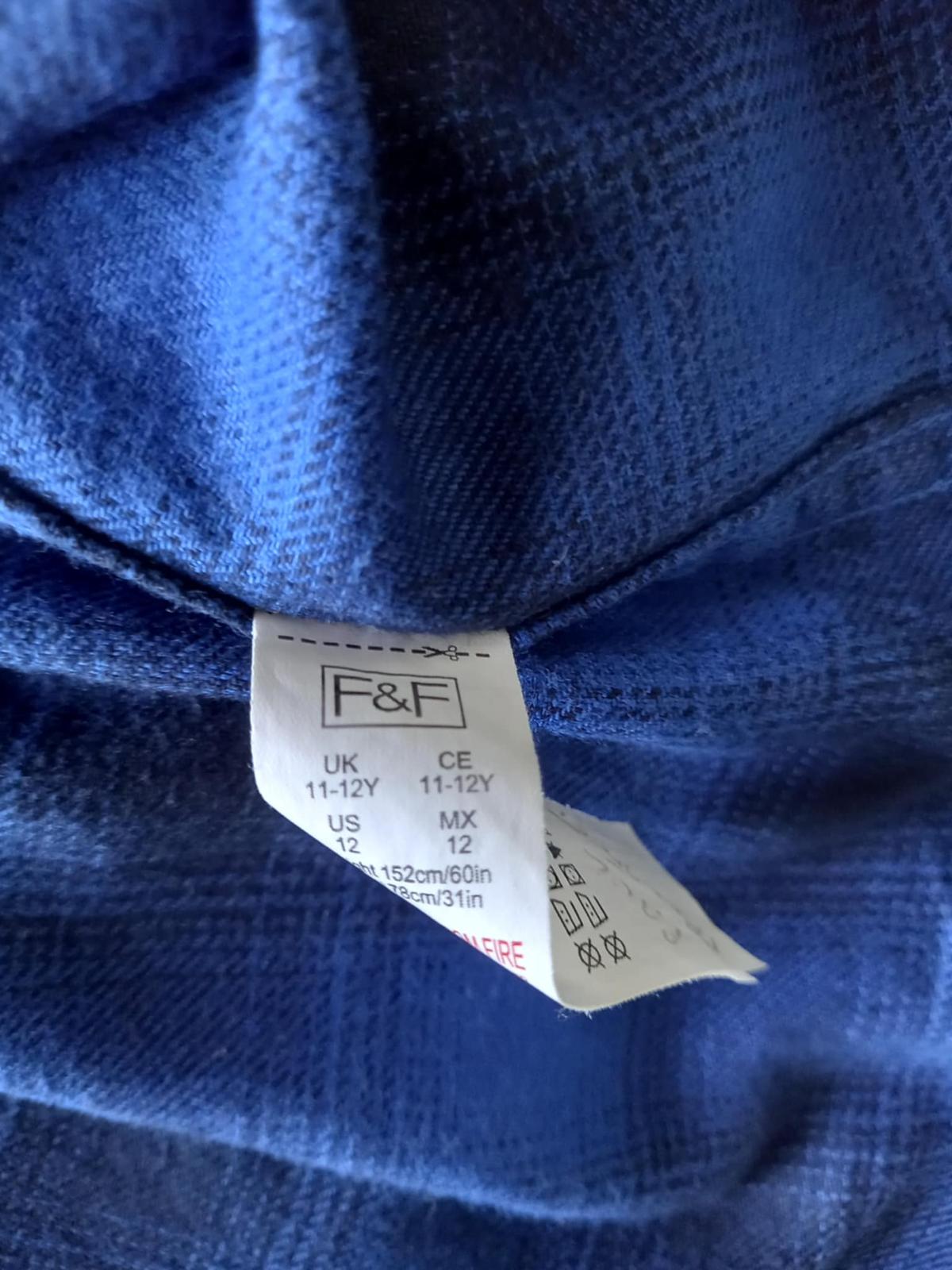 košeľa, 152, Zn. F&F, flanelová, 100 % bavlna, 11/12 rokov, skôr na chudšieho chlapca, keďže je to flanel, tak mini žmolčeky, bežné známky nosenia, pd 68 cm, rukáv 59 cm, + rameno 12 cm, 45 cm šírka pod rukávmi