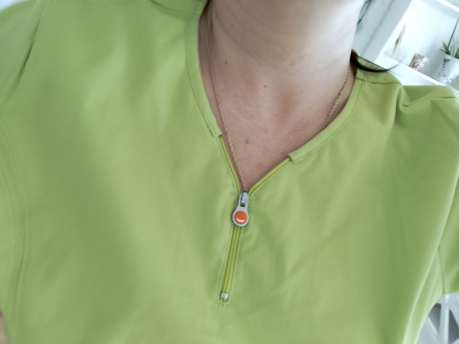 Zdravotnícka košeľa Značková kvalitná ženský strih píšu c.L ak chcete trocha voľnejšie alebo xl obtiahnuté malo nosena dĺžka 70 CM šírka pod pazuchami 57x2cm.,Pc 39eur farba je výrazná neonová zelená.antibakterialna úprava materialu
