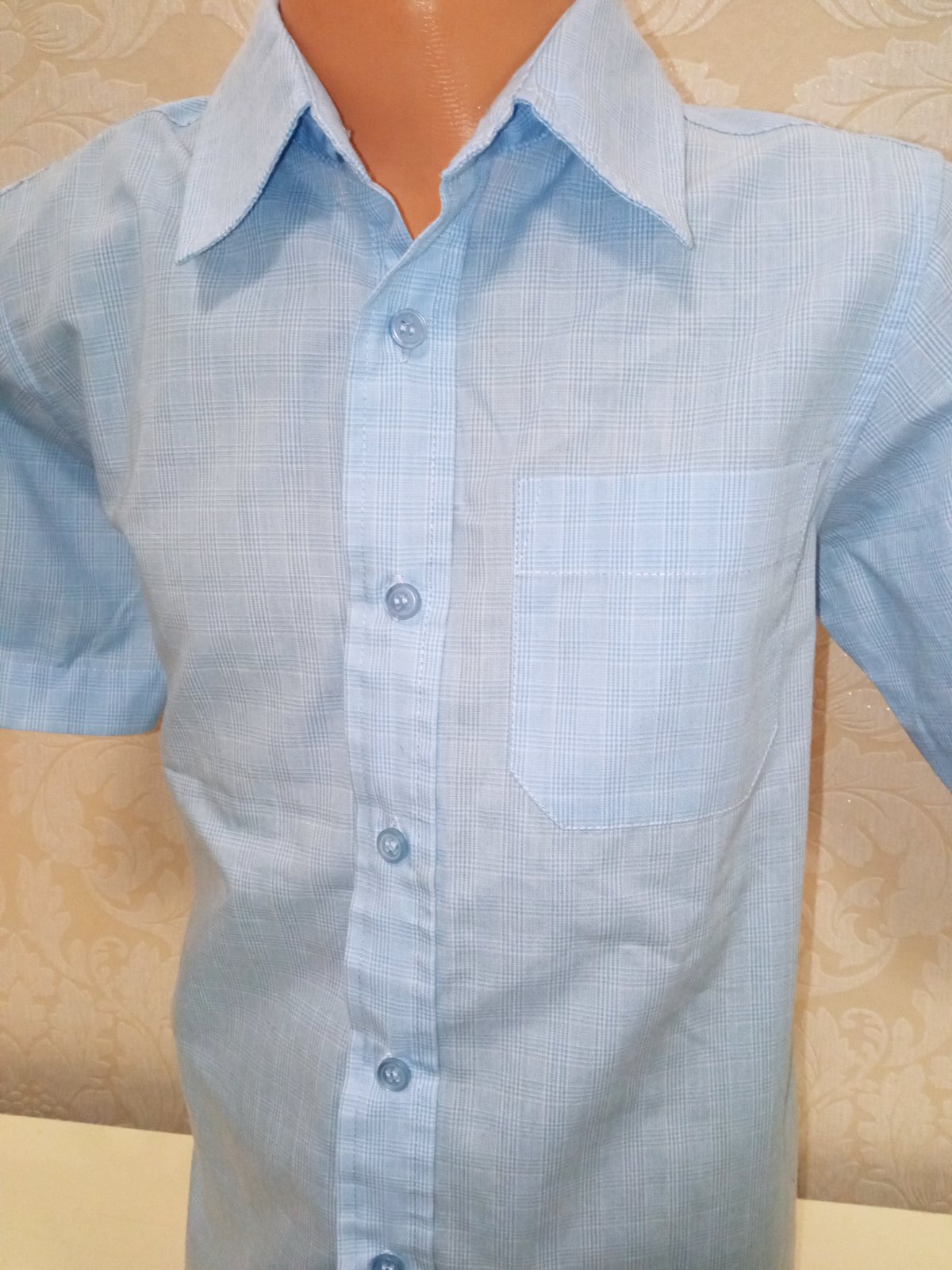 Chlapčenská košeľa s krátkym rukávom, tenká, zapínanie na gombíky, jedno vrecko na hrudi, nie je elastické, materiál 34% bavlna,66%polyester.