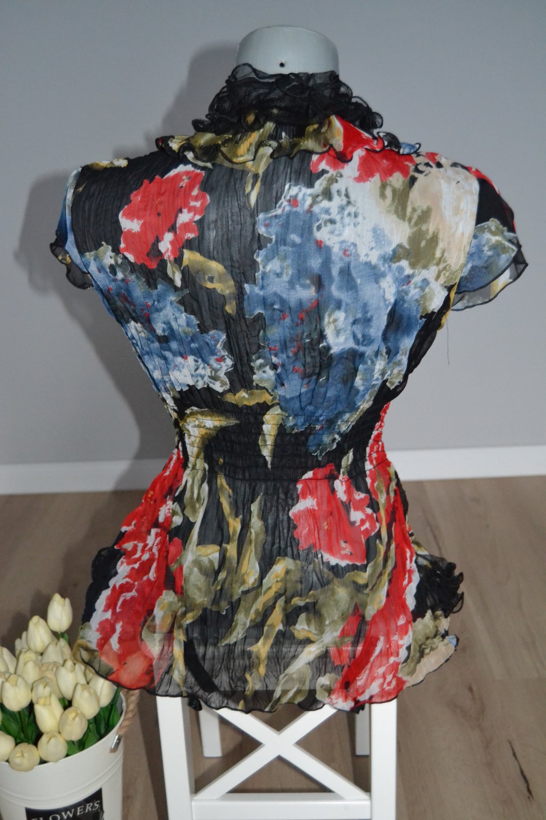 Dámska elegantná blúzka kvetinová, materiál elastický, zaväzovanie na tri šnúrky, priesvitná, veľkosť M/L.