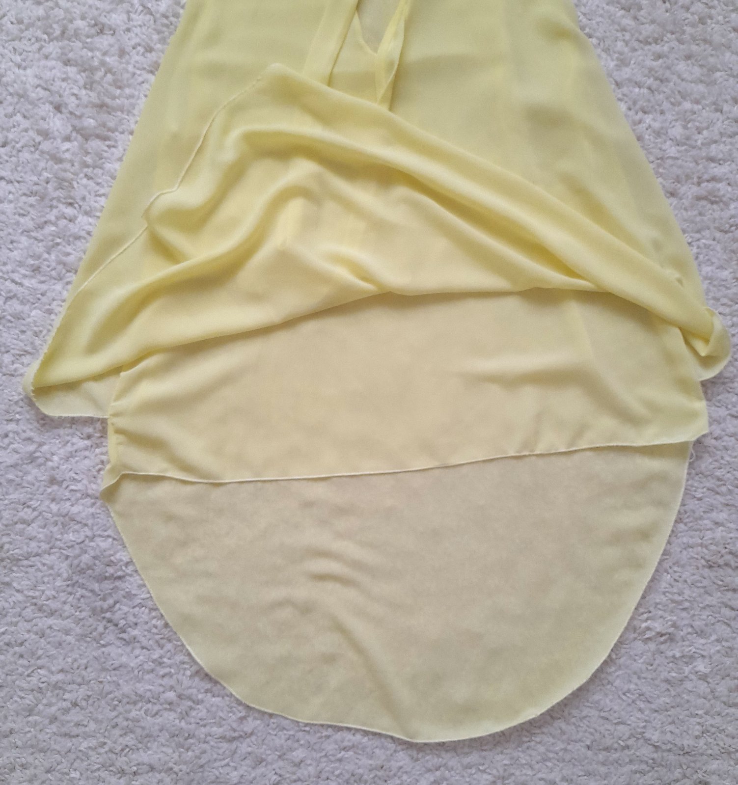 ľahký šifón, predný diel podšitý, vzadu predĺžená, dĺžka 80cm, šírka v podpazuší 51x2cm