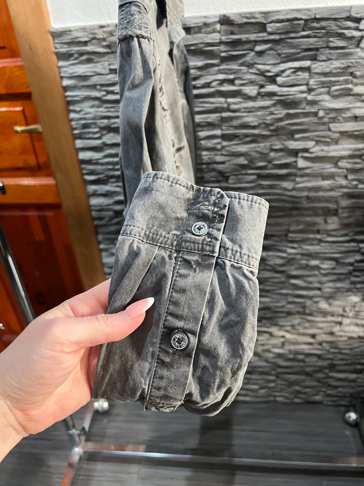 predám šedú košeľu veľ. S, má kryté zapínanie gombíkov, málo nosená