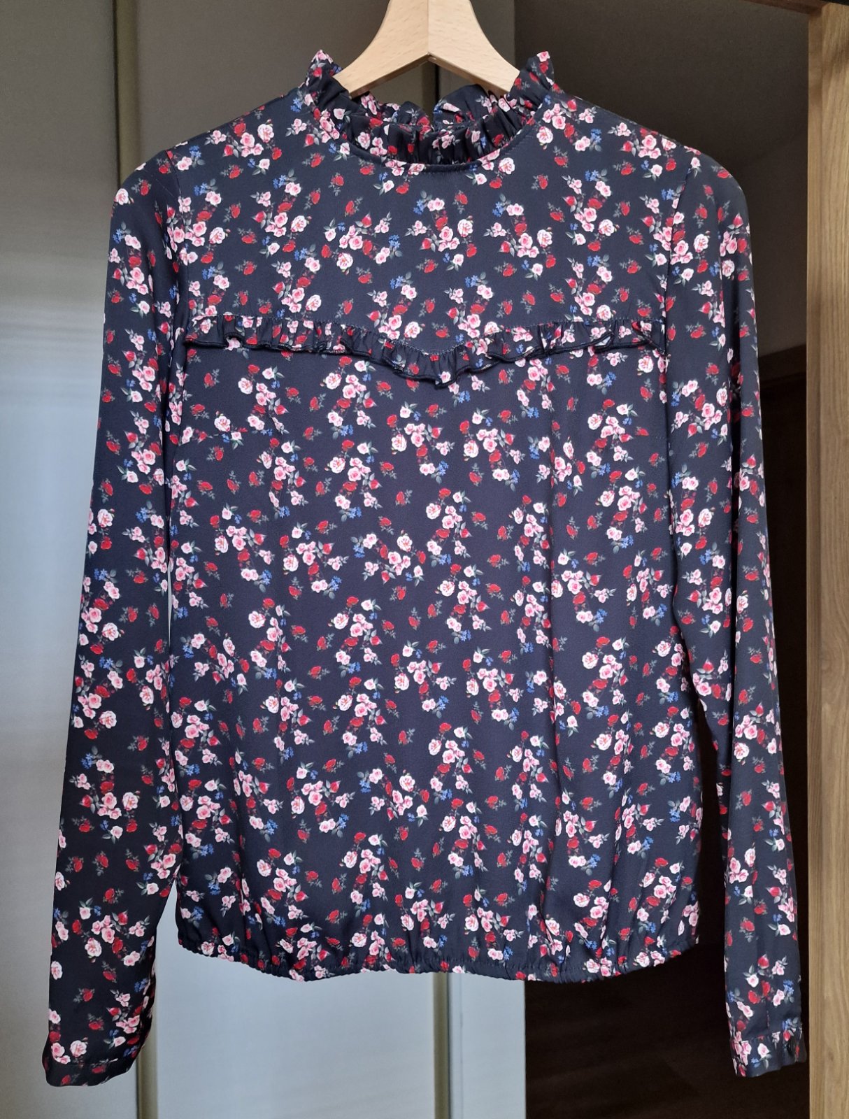 Predám ľahučkú kvetinkovú blúzočku Mohito After Hours, veľ. XS, pár x oblečená, super stav. Dĺžka 55 cm predná, 58 cm zadná, rukáv 72 cm, hrudník 94 cm. Je z ľahučkého padavého príjemného materiálu, príjemná na nosenie. Ozdobný volán na krku, dole okolo spodného kraja gumička. Cena 3,50 € plus poštovné.