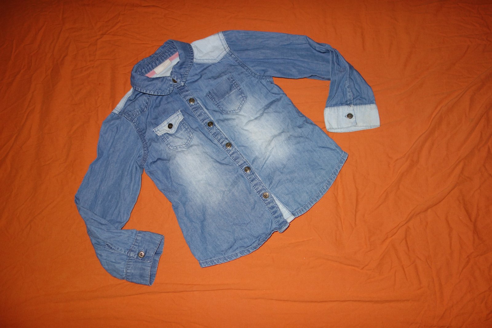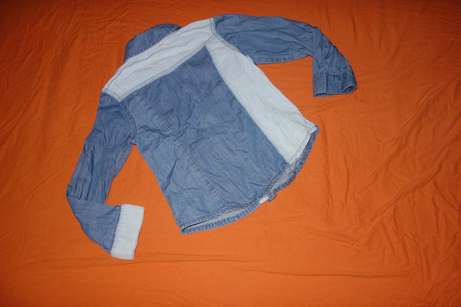 Pekna kosielka z makkej riflovinky vo velmi dobrom stave, avsak ma na sebe niekolko slabych fliacikov.