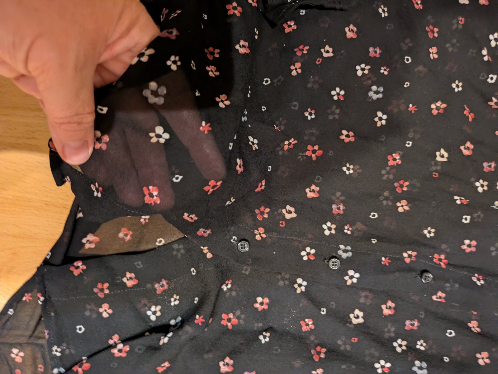 Jemne transparentná, krásna, drobné kvietky, zn Ikks woman / žiadna Čína, nosila som ako 46, písaná 44, celková D cca 62 vzadu, rukáv cca 74, š cca 58, elegantná, vzdušná, v peknom stave, nespraná