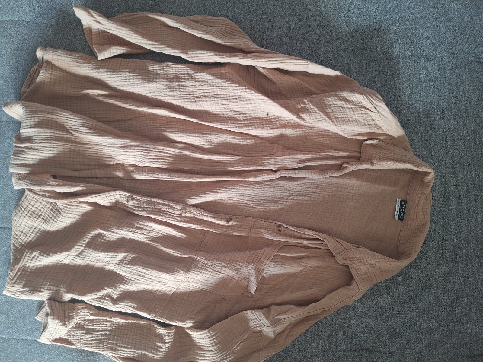 Predám krásnu ľahkú košeľu v krásnej bledohnedej farbe.