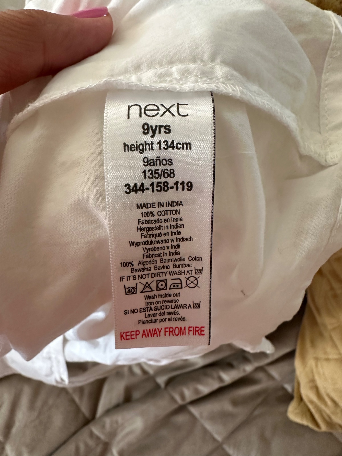 Predám blúzku Next veľkosť 9r/134cm. Dĺžka od krku dole cca 48cm, rukáv od krku cca 39cm, šírka pod pazuchami cca 37 cm. Cena vrátane obyčajného poštovného.