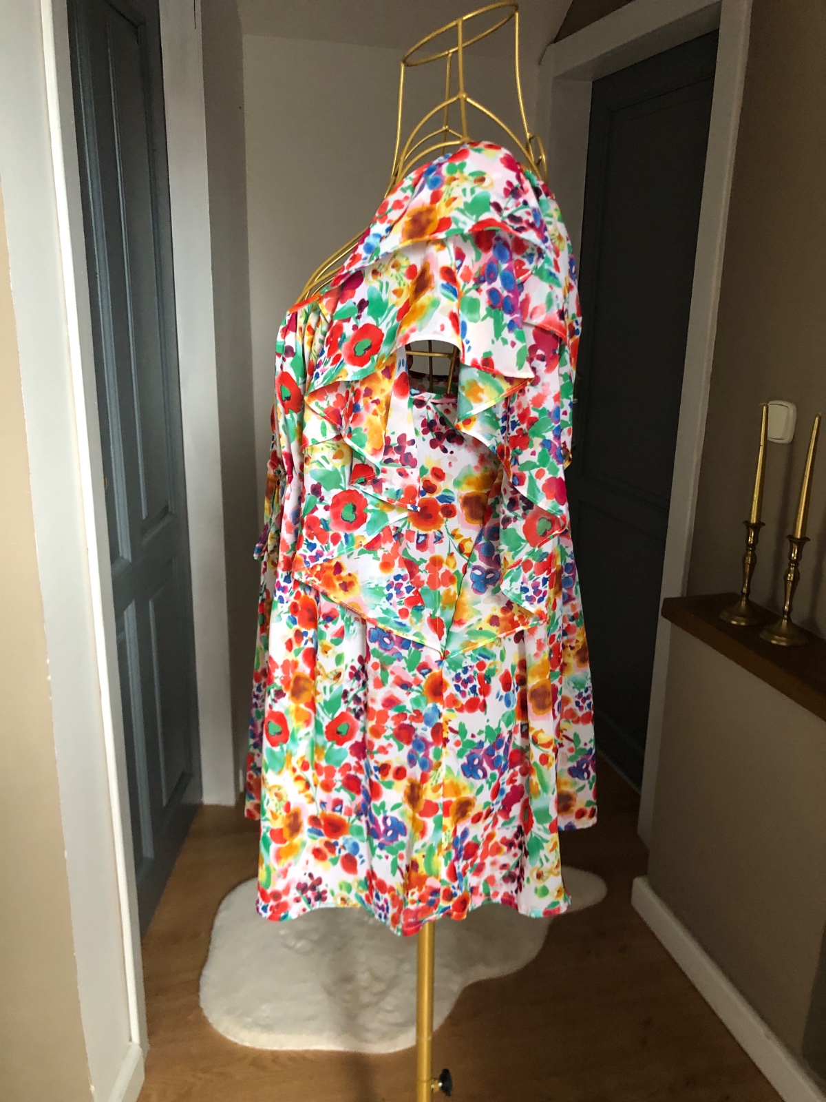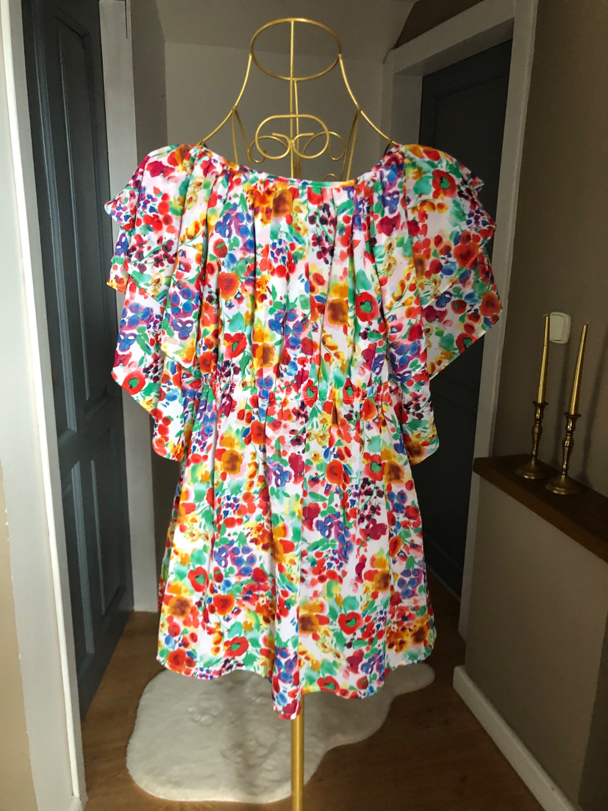 Kvalitná kvetovaná blúzka, pod prsiami šnúrka na uvazovanie, super stav.