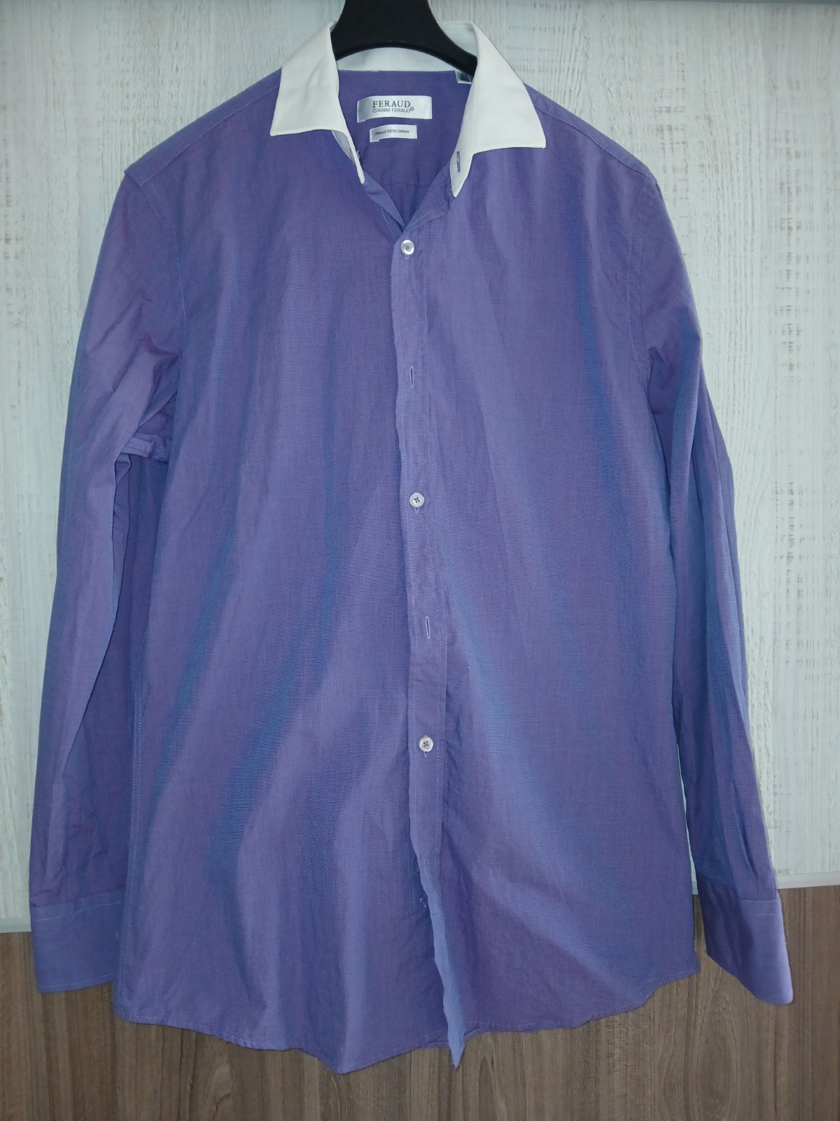 Fialová košeľa s modrým odleskom v top stave. Pre viac info sprava