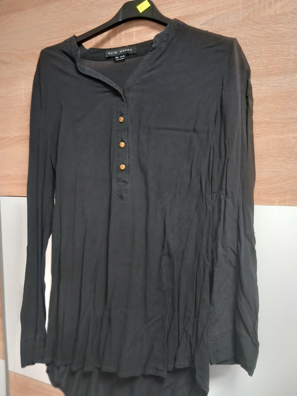 Cierna bluzka,nenosena,len odtrhnuta visacka, velkost pisana 38 ale mne je velka. Da sa nosit so spustenymi rukavmi na ramenach. Dlzka od ramena 58 cm.