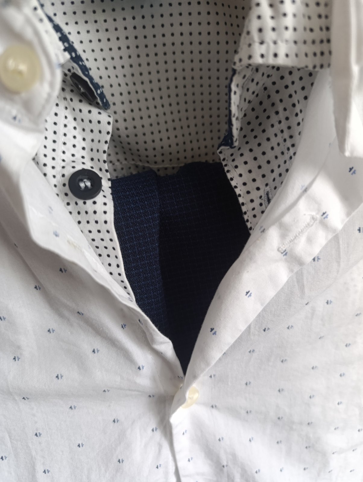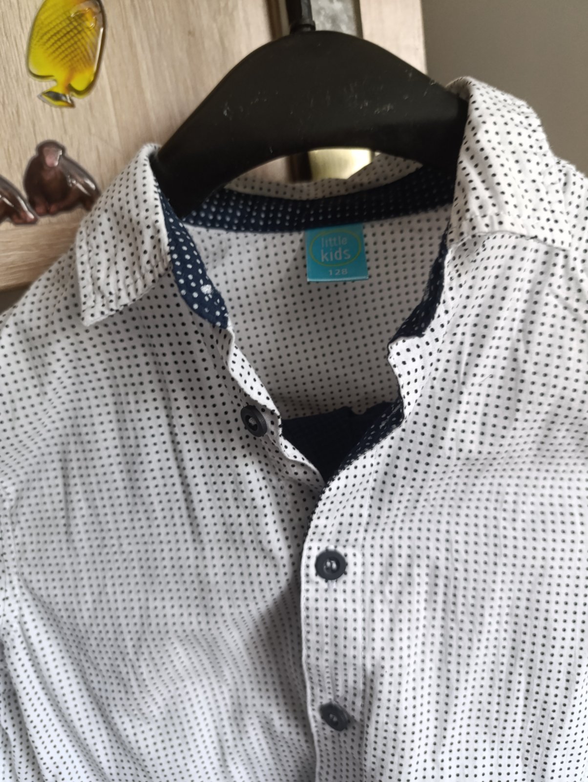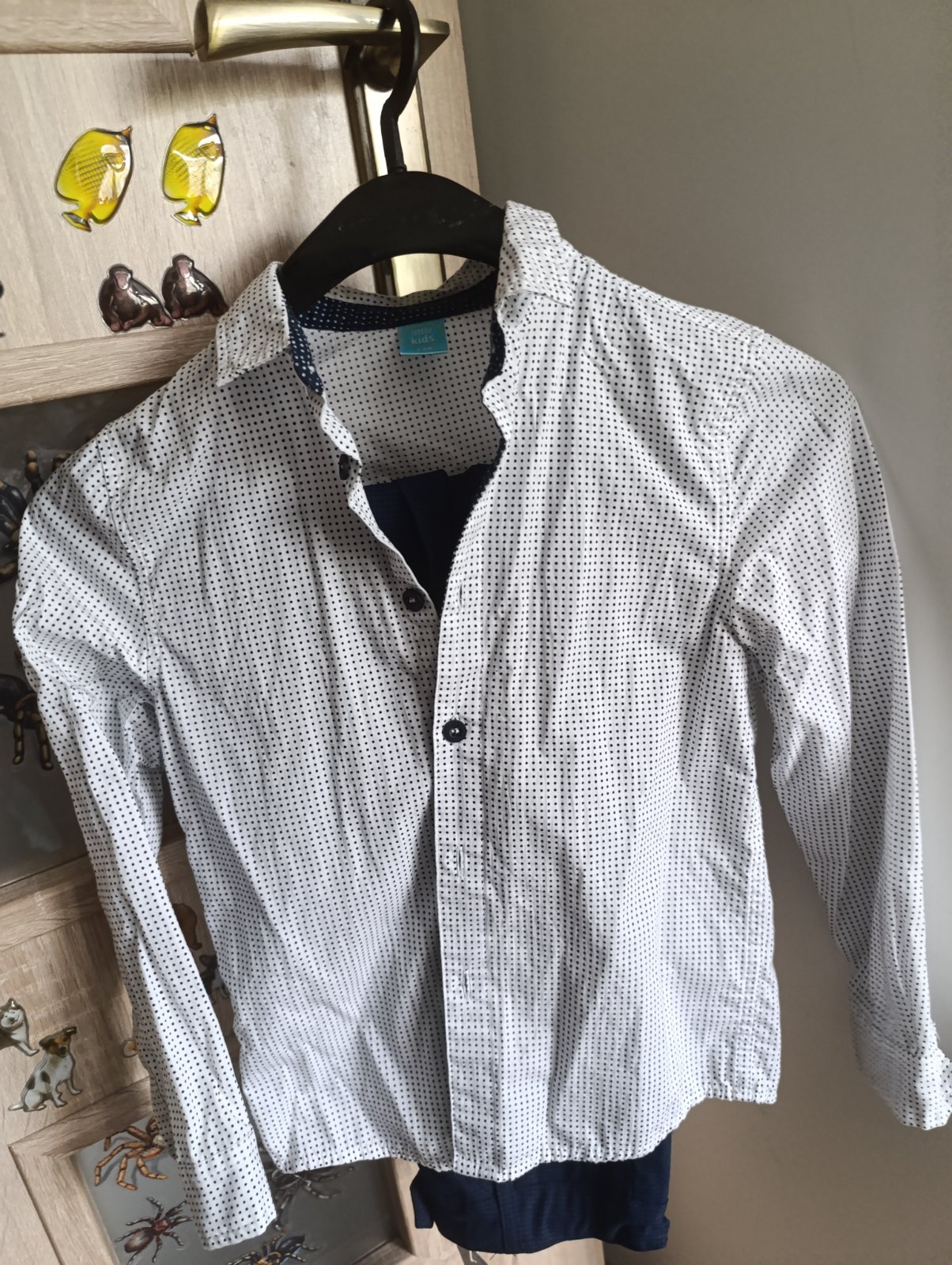 Košeľa vo veľmi peknom stave. Kombinácia s tmavomodrou. 128/134 kľudne.